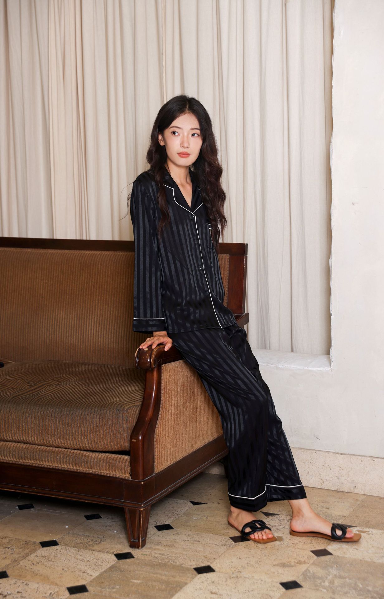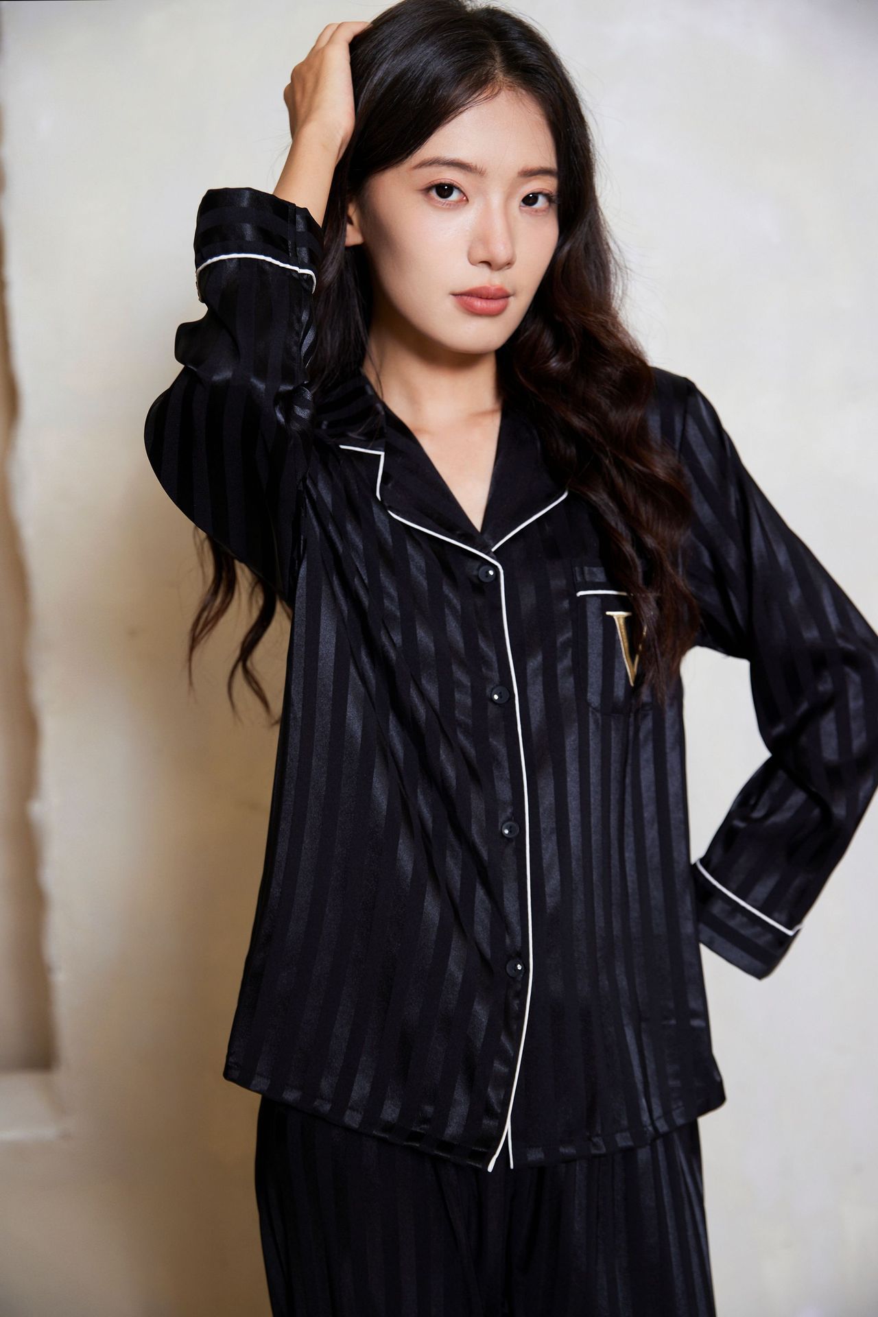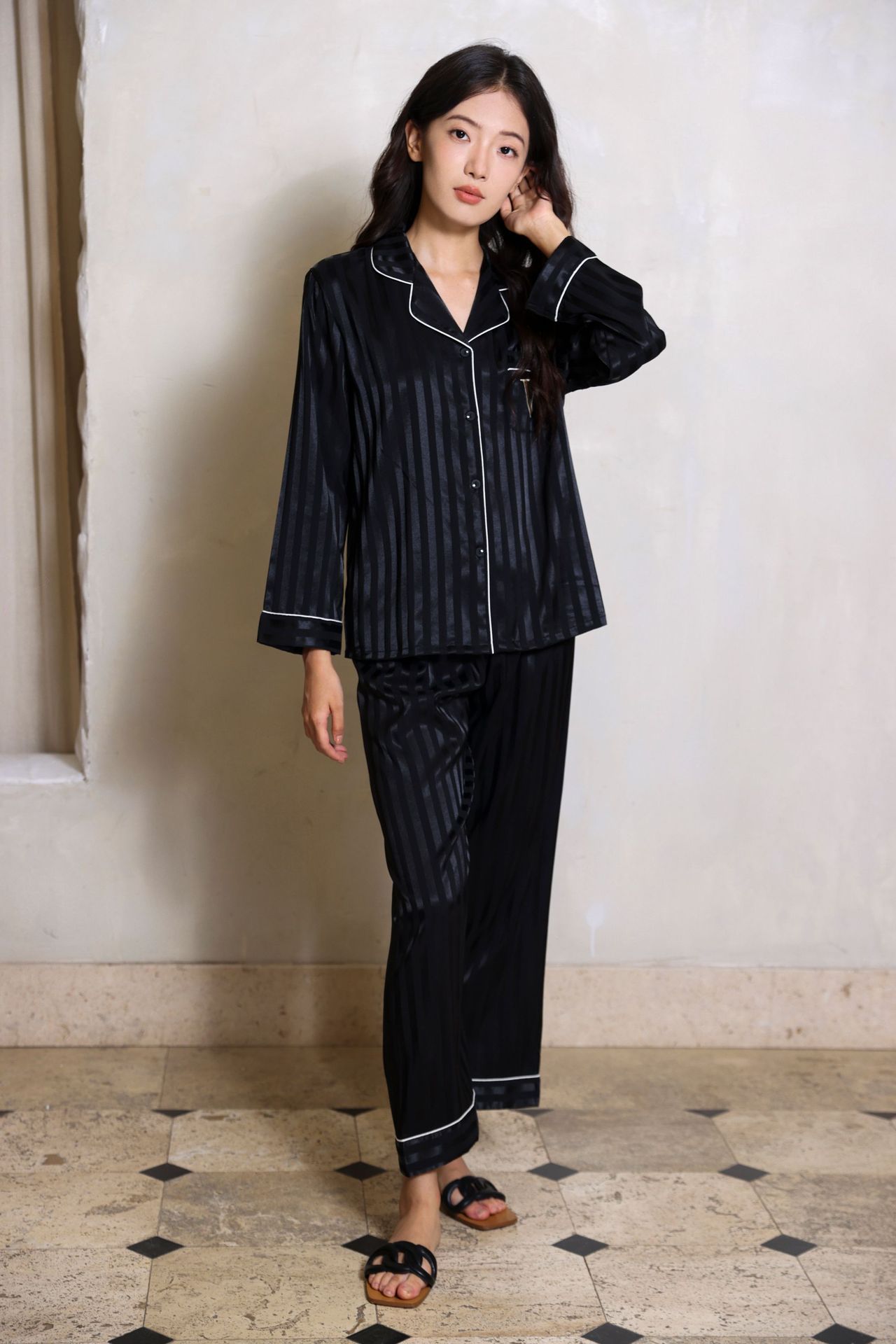 维家刘亦菲同款冰丝睡衣女夏秋高级感长袖缎面家居服套装可外穿