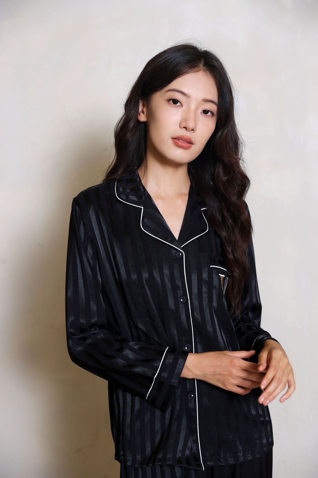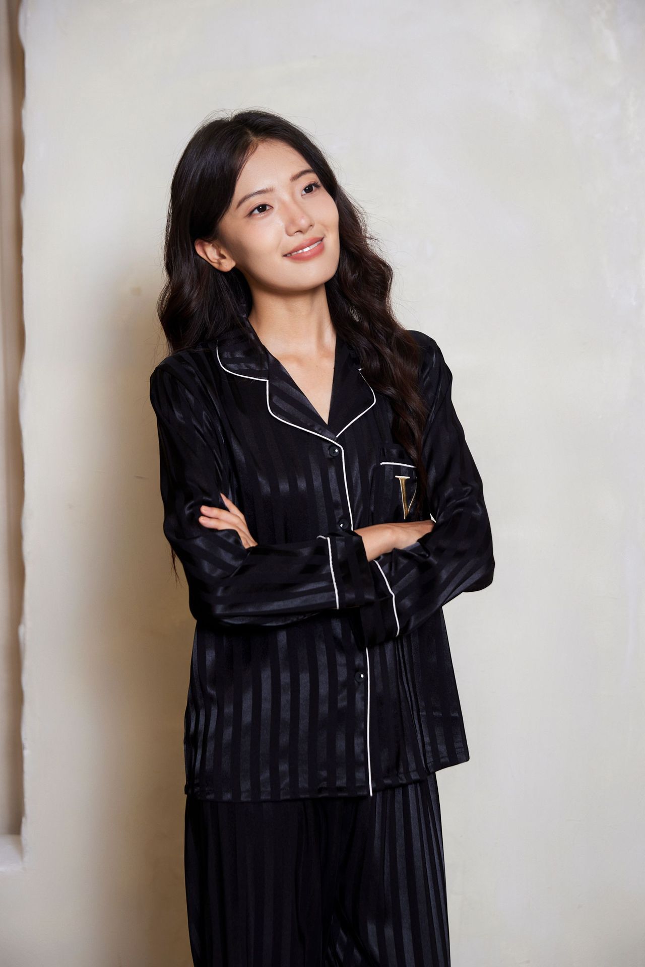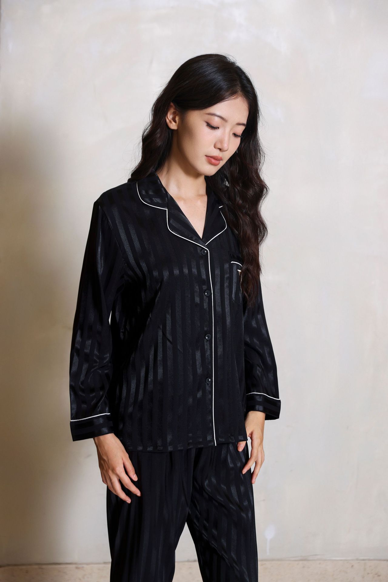 维家刘亦菲同款冰丝睡衣女夏秋高级感长袖缎面家居服套装可外穿