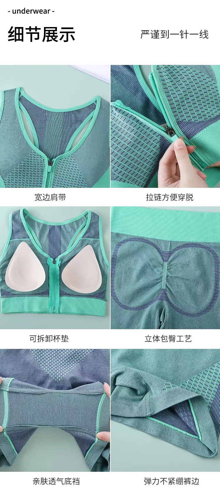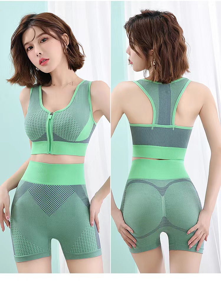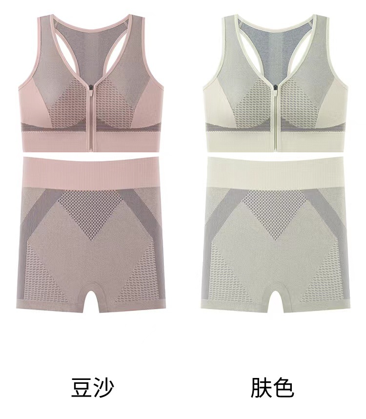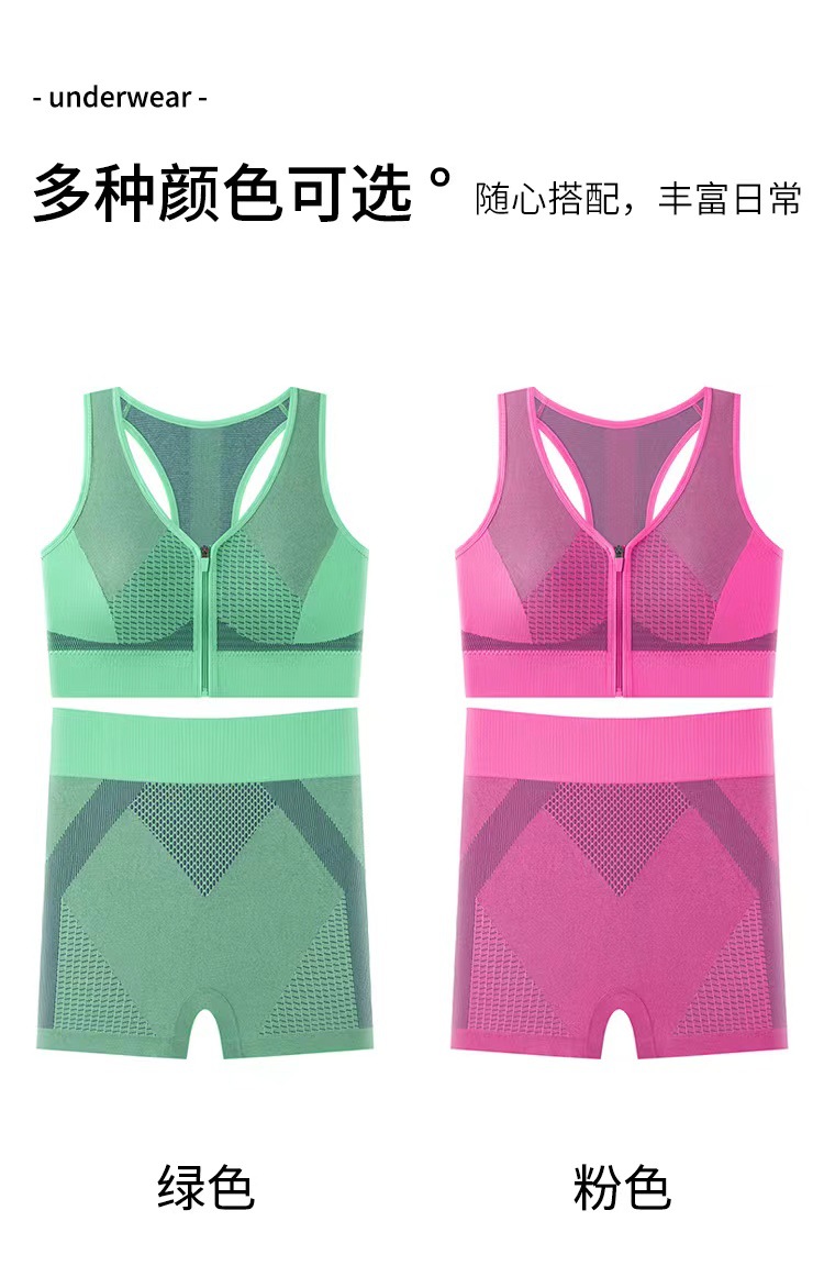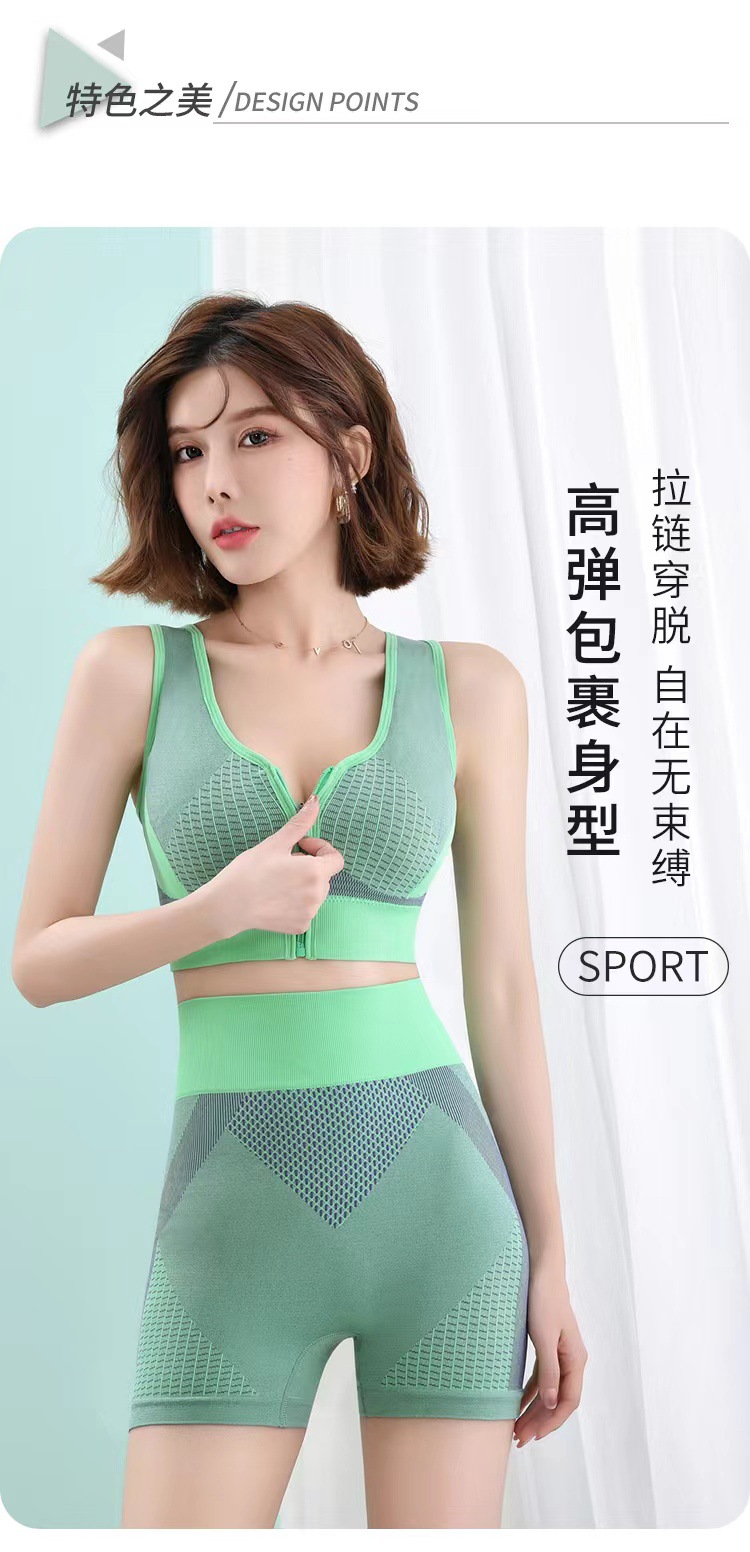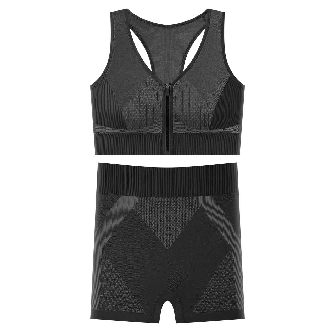 跨境美背内衣前拉链运动健身套装女士防走光背心短裤瑜伽跑步防震