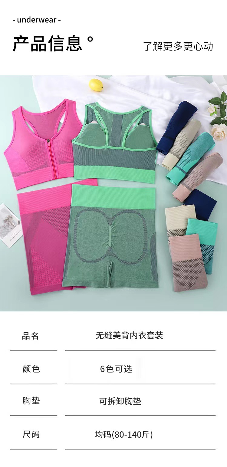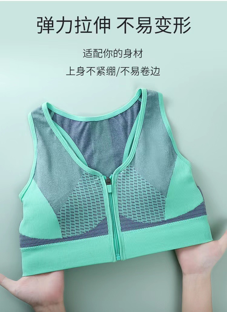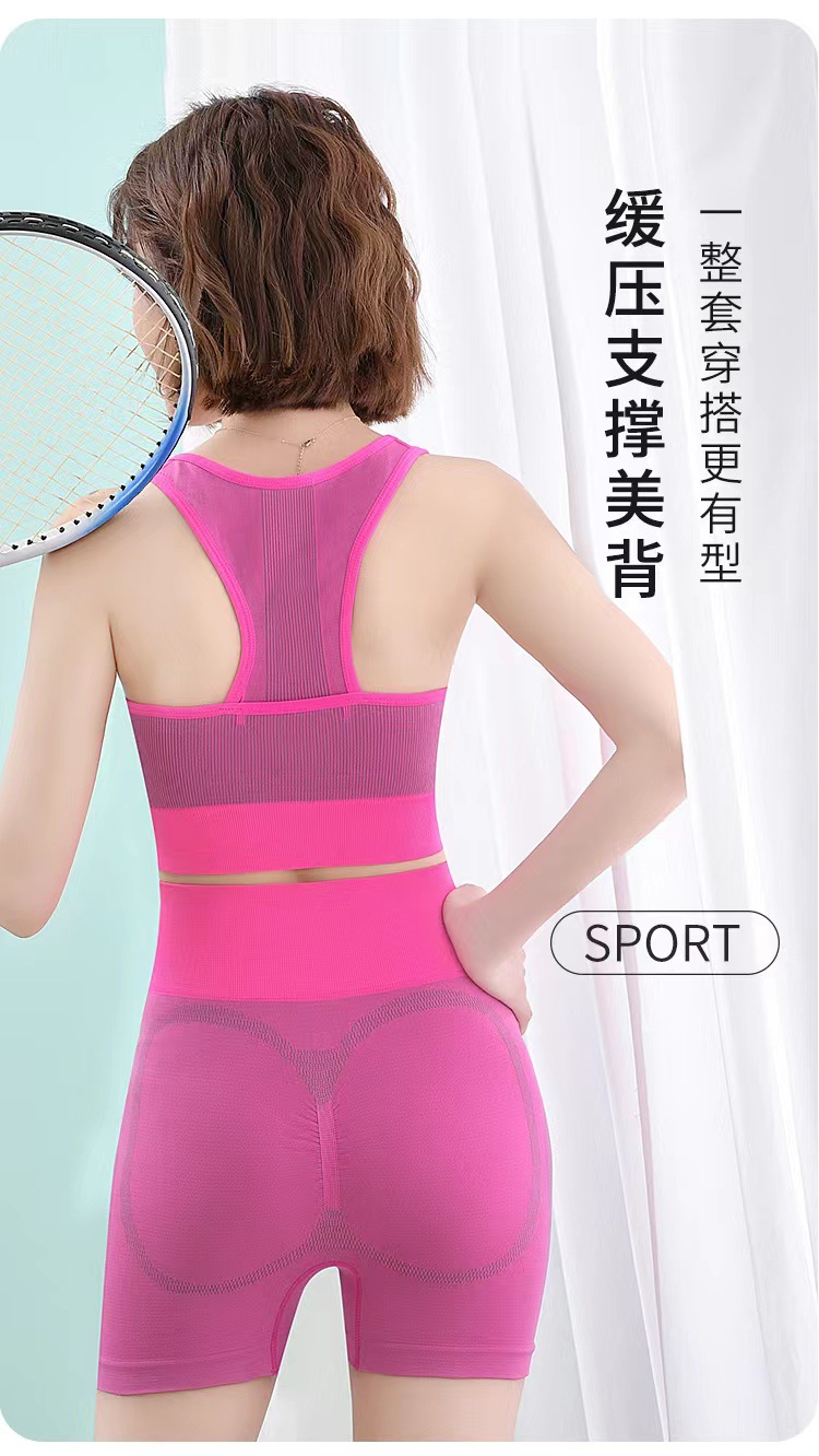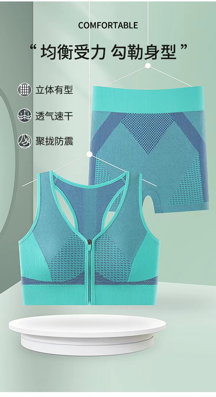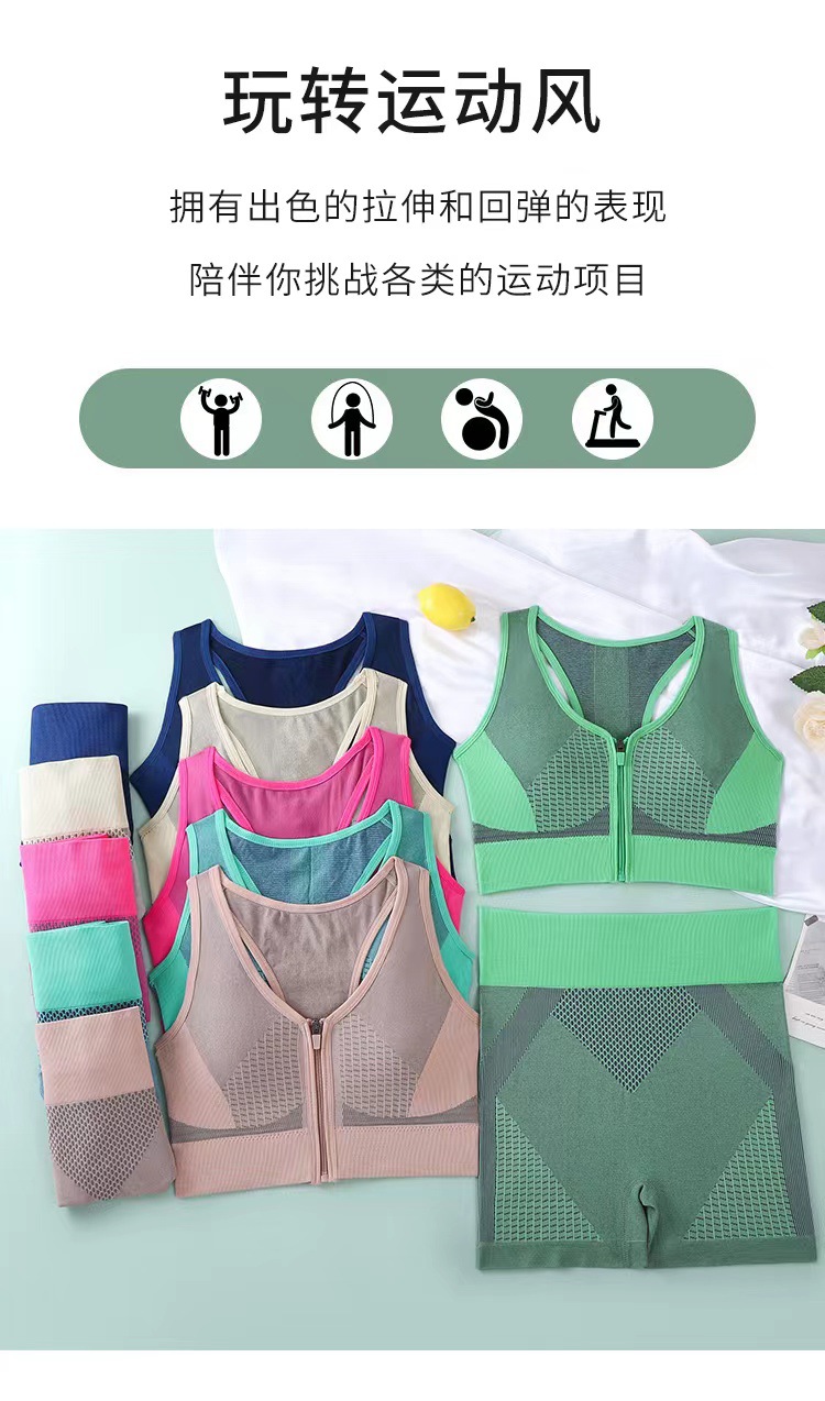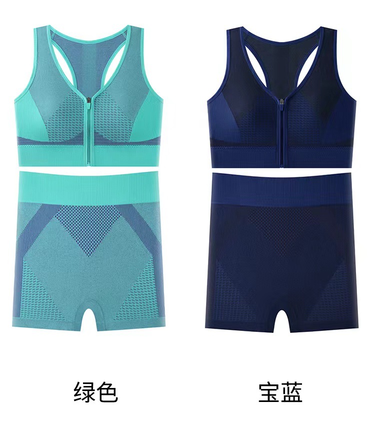 跨境美背内衣前拉链运动健身套装女士防走光背心短裤瑜伽跑步防震