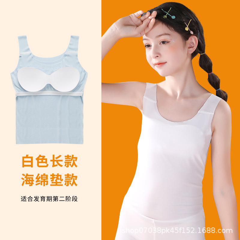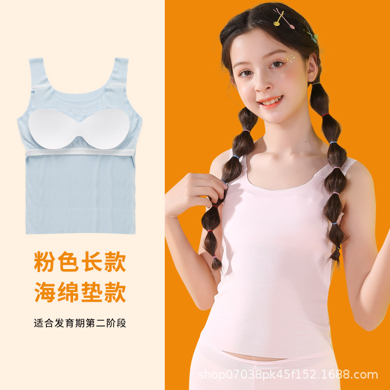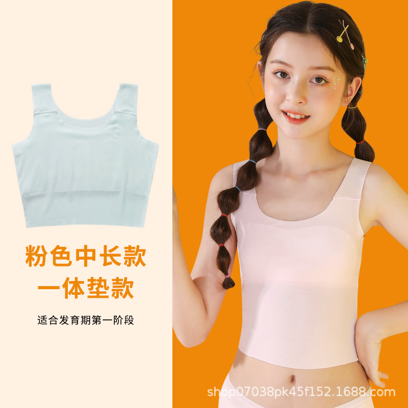 女童发育期小背心少女韩版内衣小学生背心儿童内衣防凸点一体棉垫