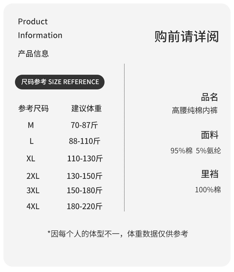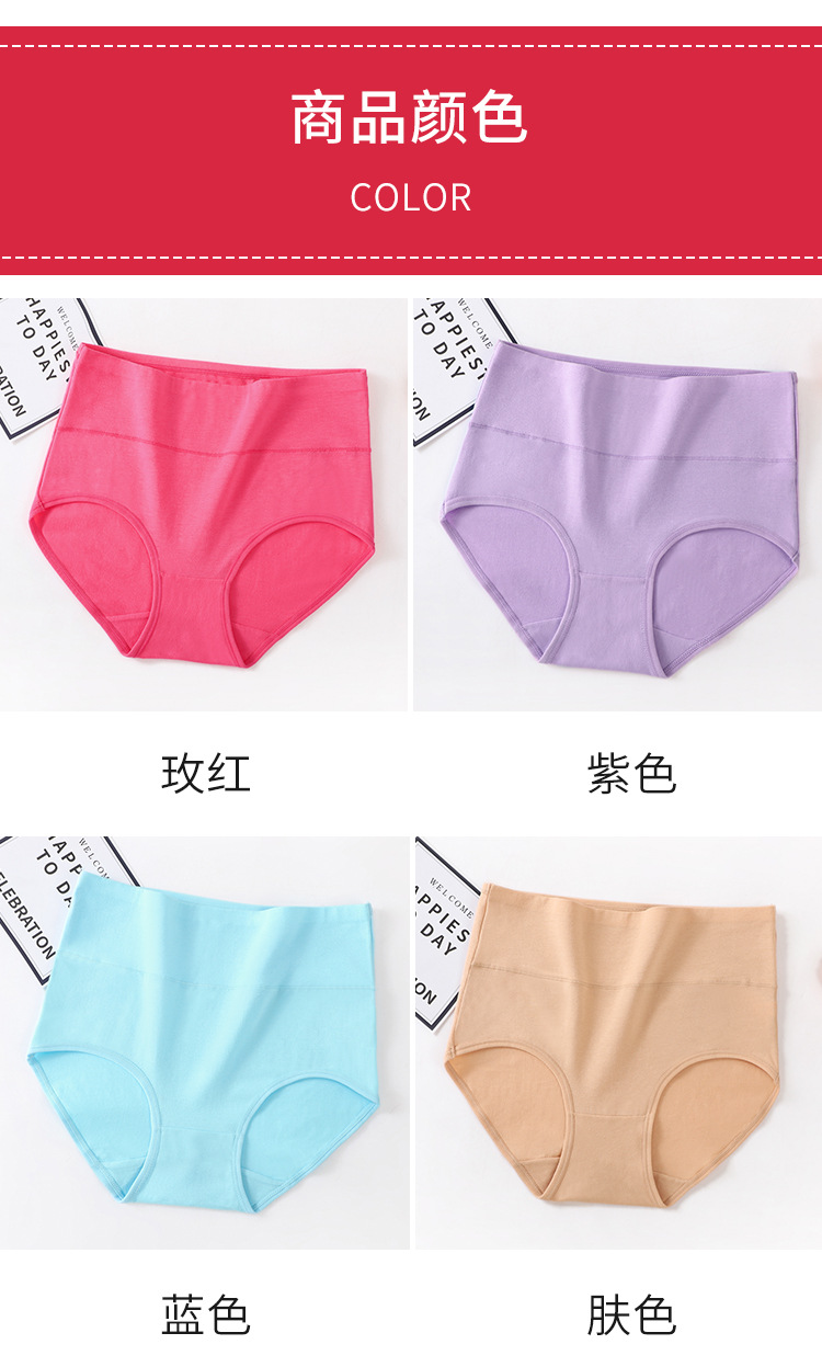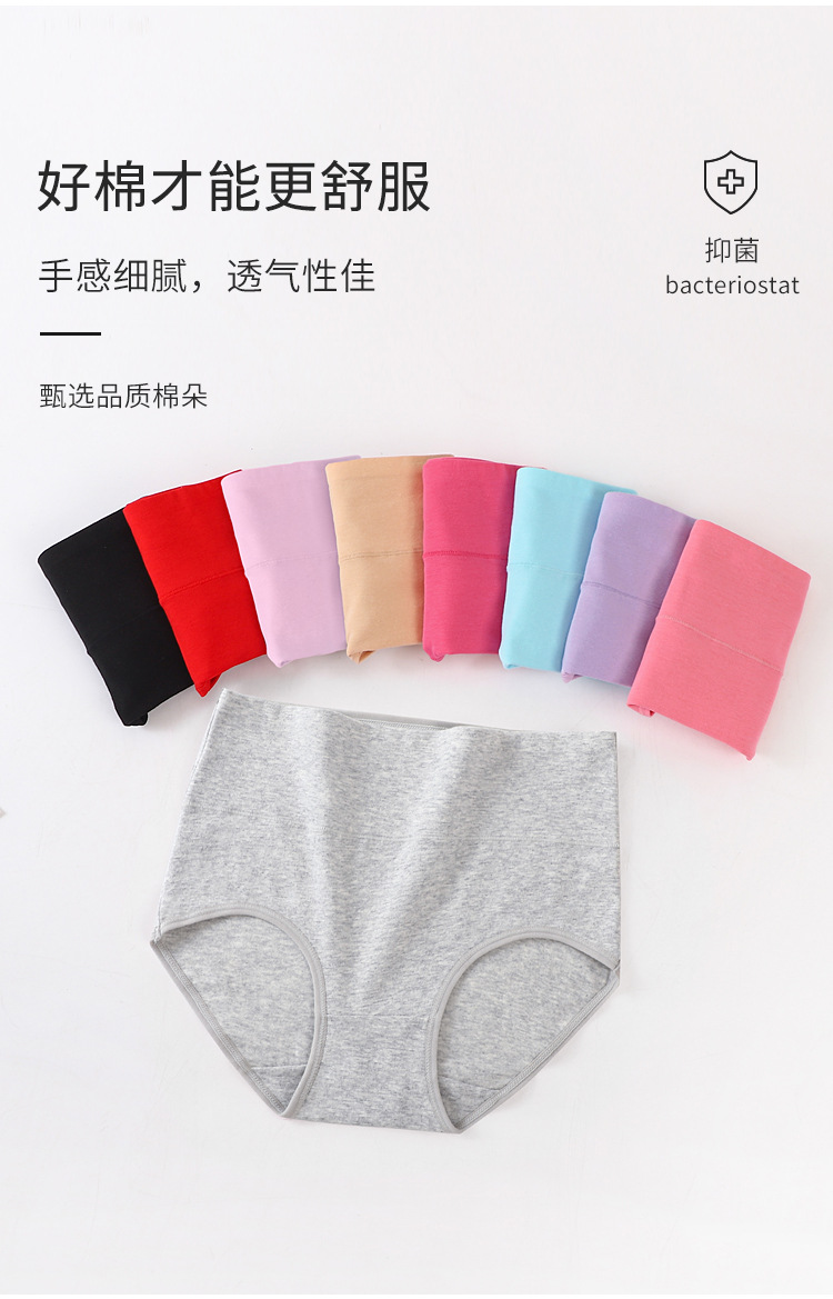 女士高腰纯棉内裤经典纯色提臀塑身舒适大码内裤女纯棉高腰收腹裤