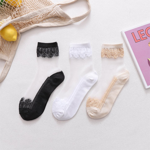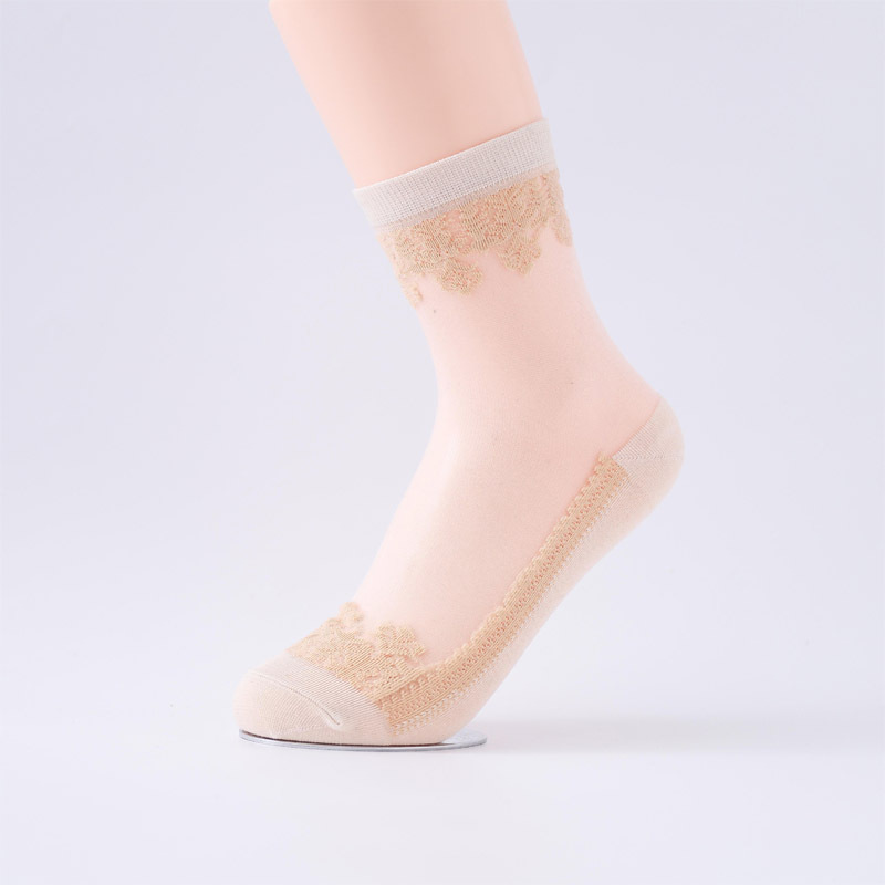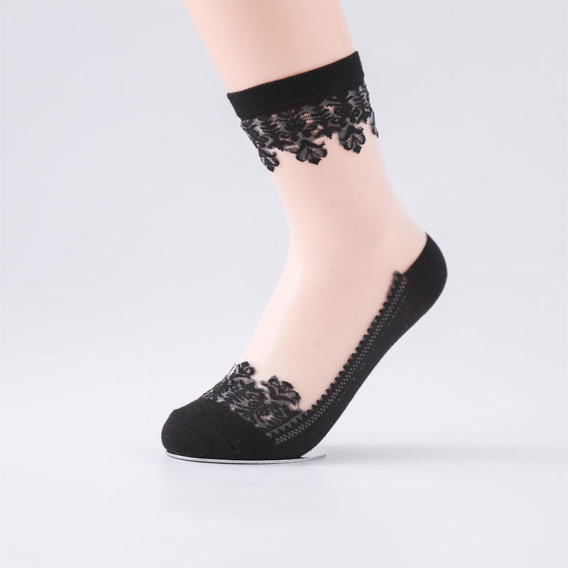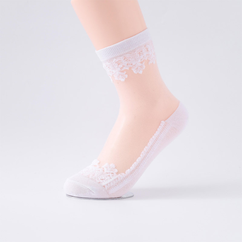春夏新款防滑底丝袜提花水晶玻璃丝袜女士短筒袜子女薄款中筒袜子