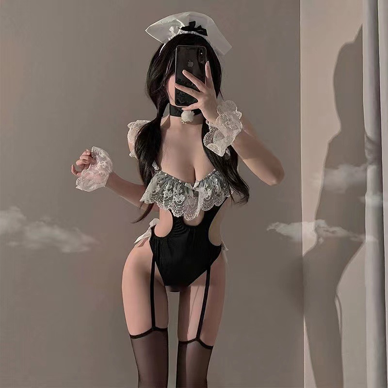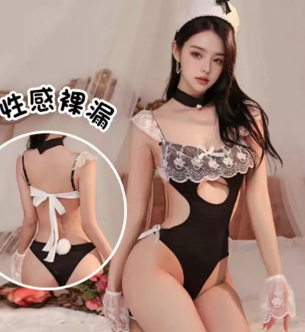 杮弭新款性感兔女郎吊带蕾丝花边女仆制服连体衣诱惑套装