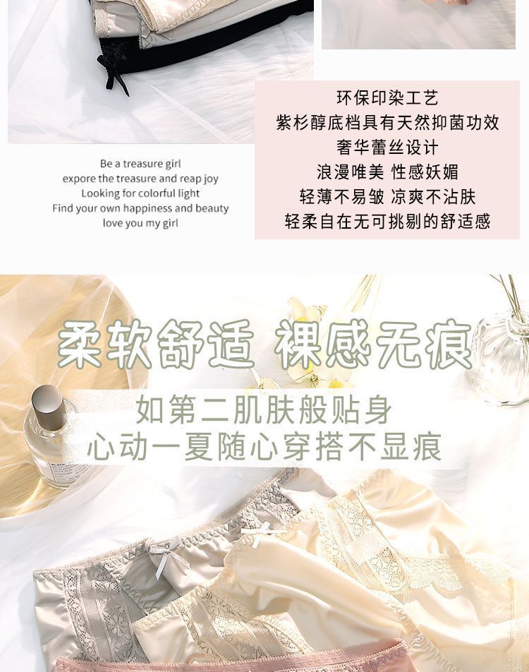 内裤女士轻奢高端蕾丝性感无痕透气冰丝薄款中高腰纯欲短裤三角裤