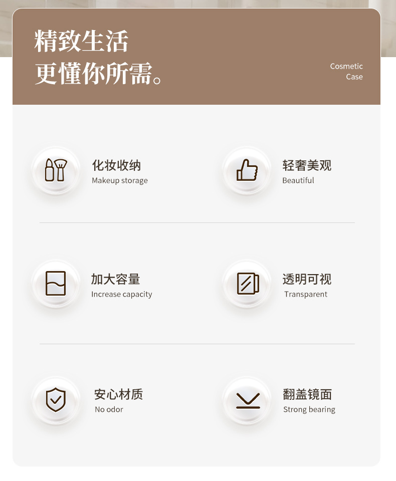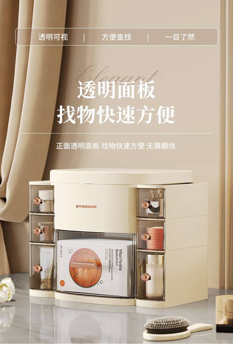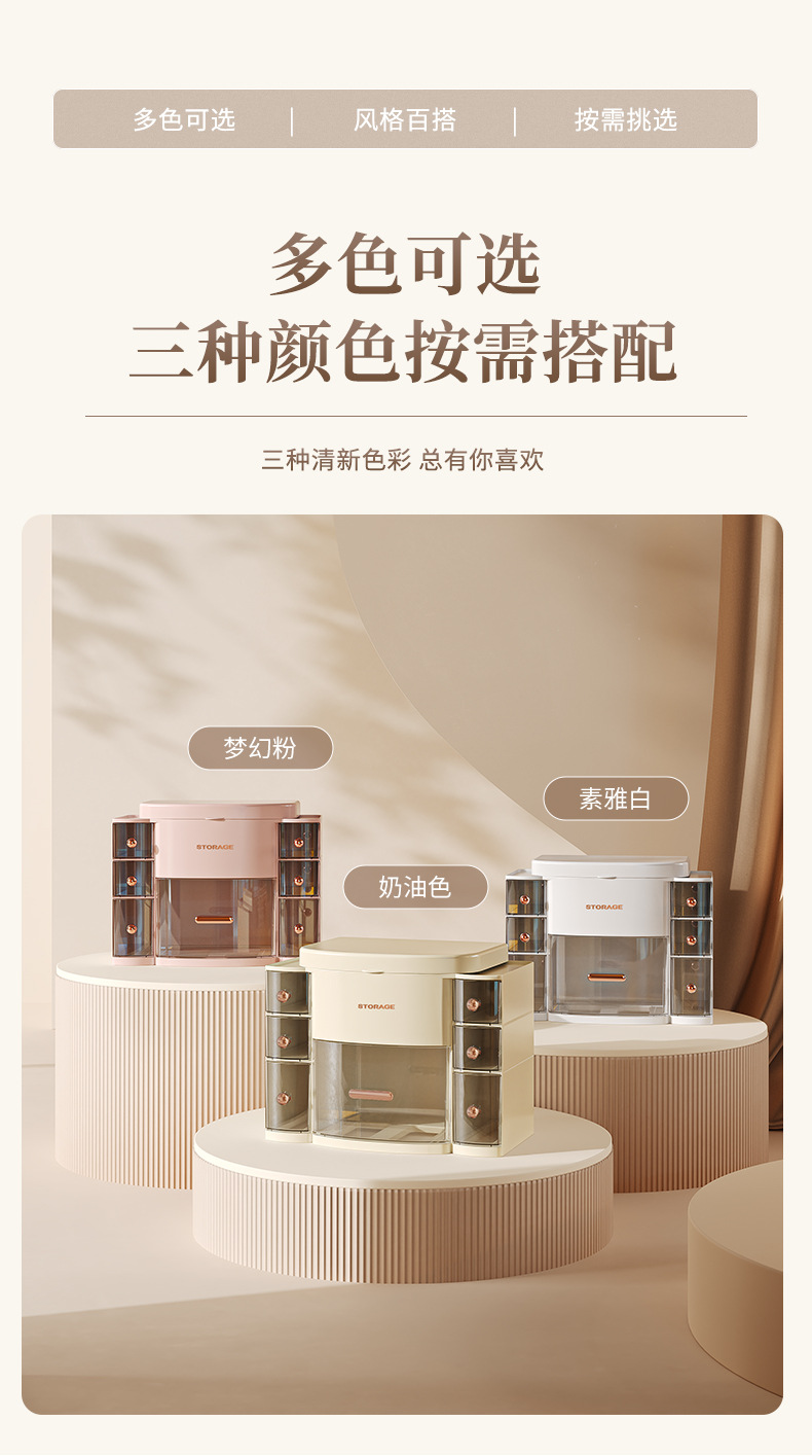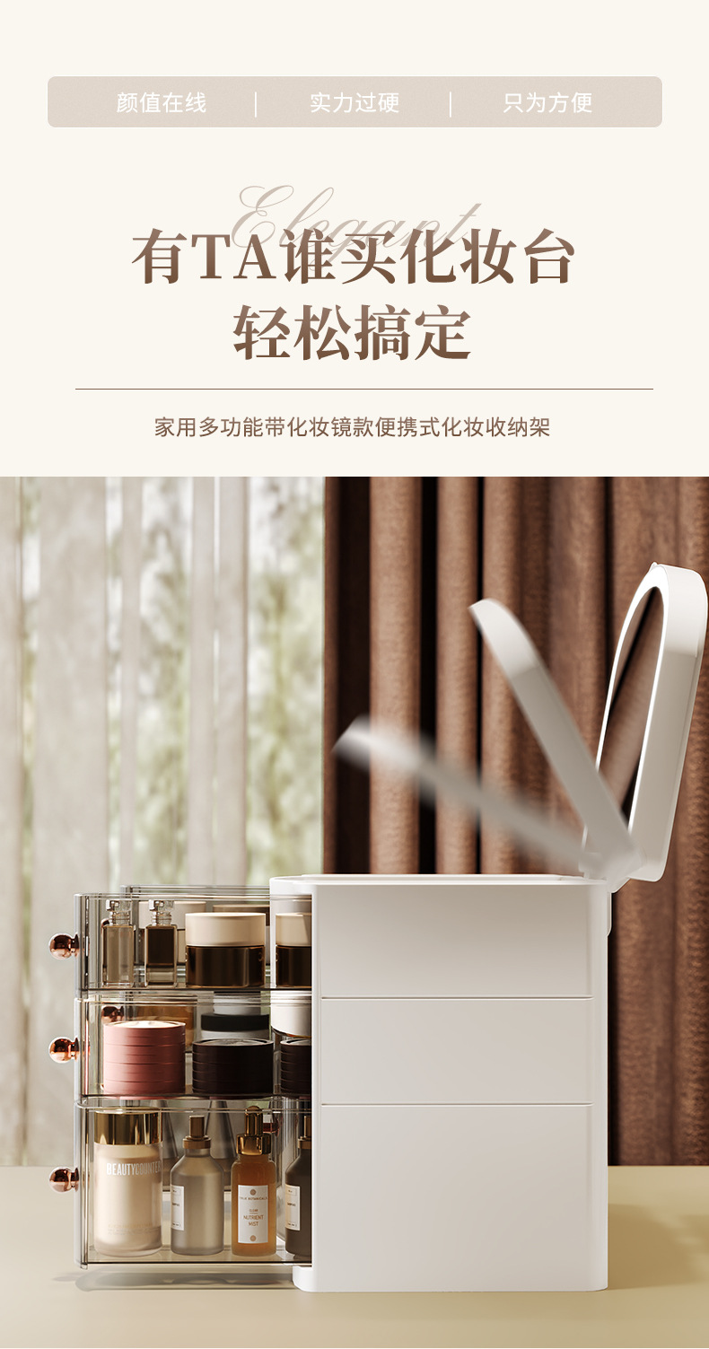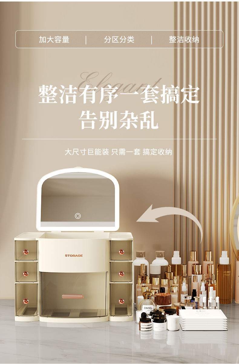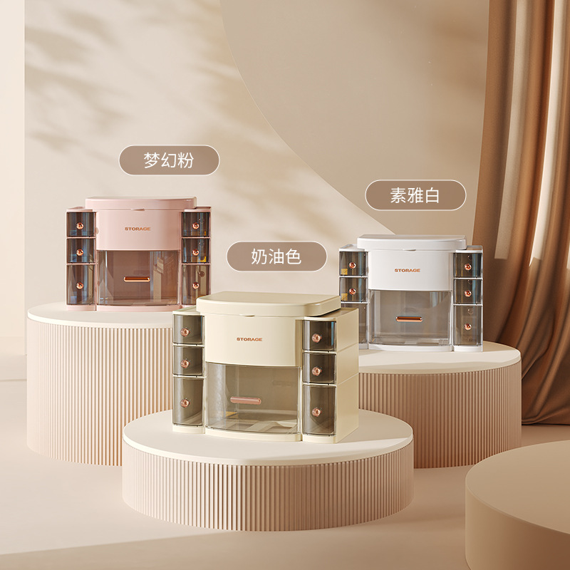 带镜子化妆品收纳盒三色带灯放护肤品化妆箱桌面抽屉式防尘置物架