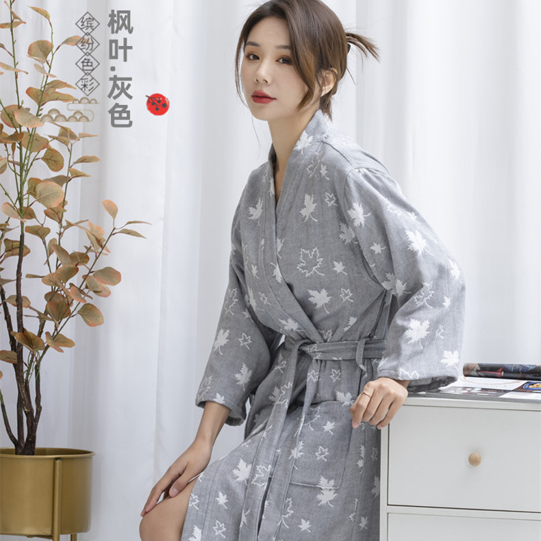纯棉纱布薄浴袍加密双层全棉浴衣情侣春夏秋冬吸水男女汗蒸服睡袍