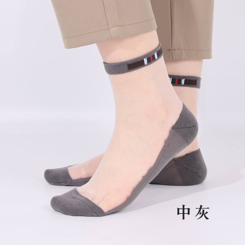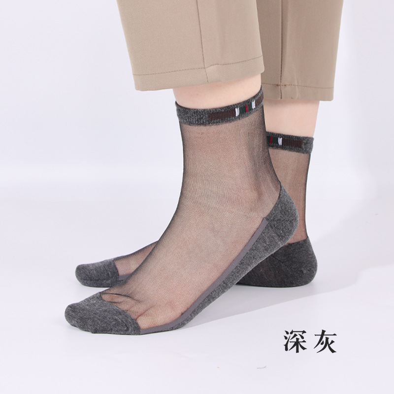 袜子男春夏吸汗薄款水晶丝男袜棉底中筒休闲男袜春秋袜子海宁袜业
