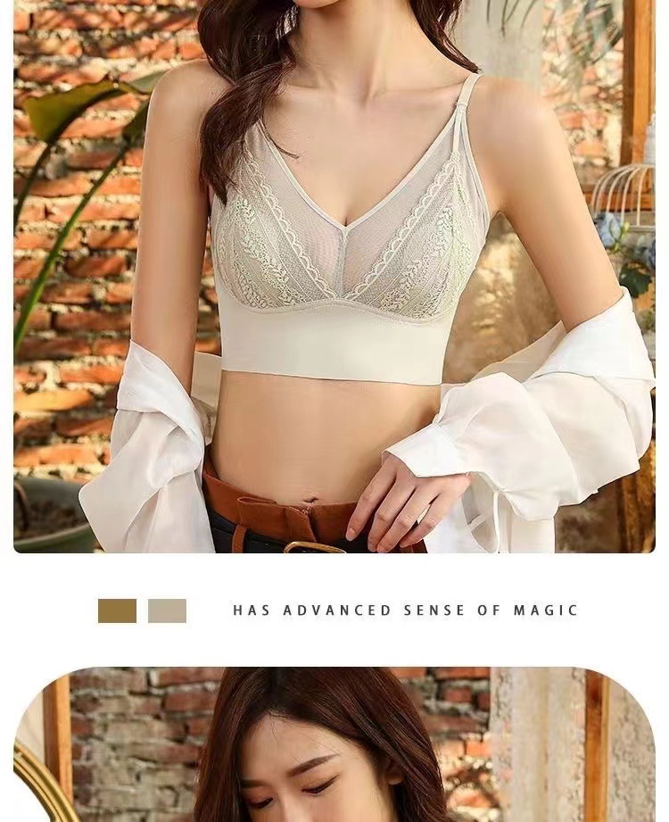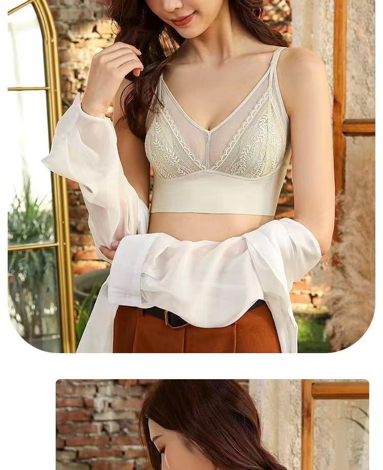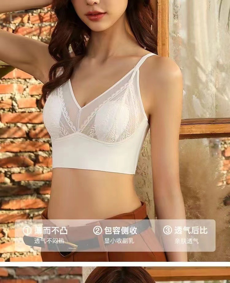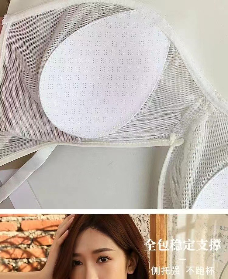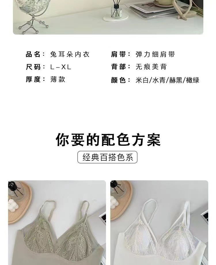 新款大码美背法式内衣女纯欲风镂空兔耳杯蕾丝大胸上托背心式文胸