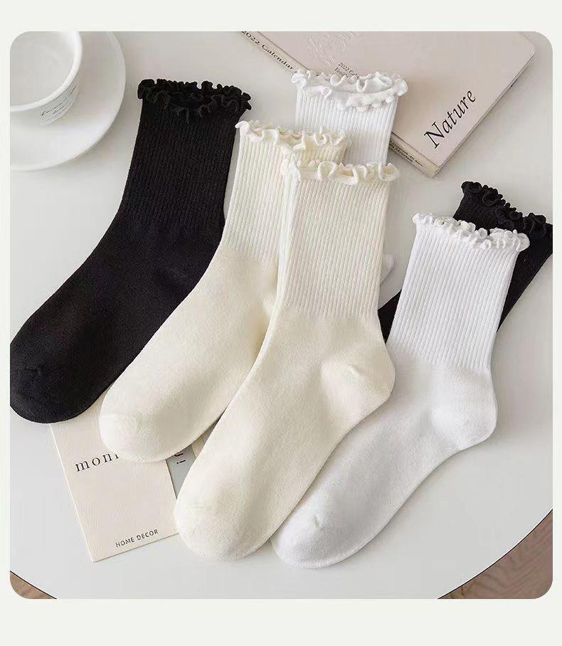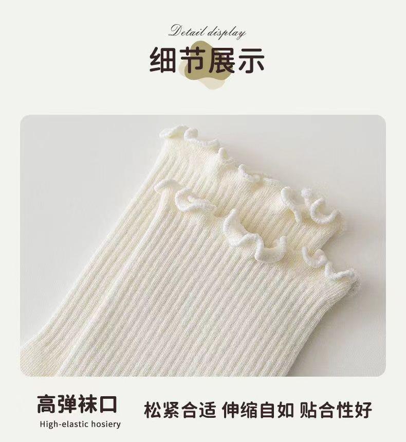 袜子女夏季韩版中筒袜白色花边jk袜春秋木耳边长筒袜日系ins潮袜