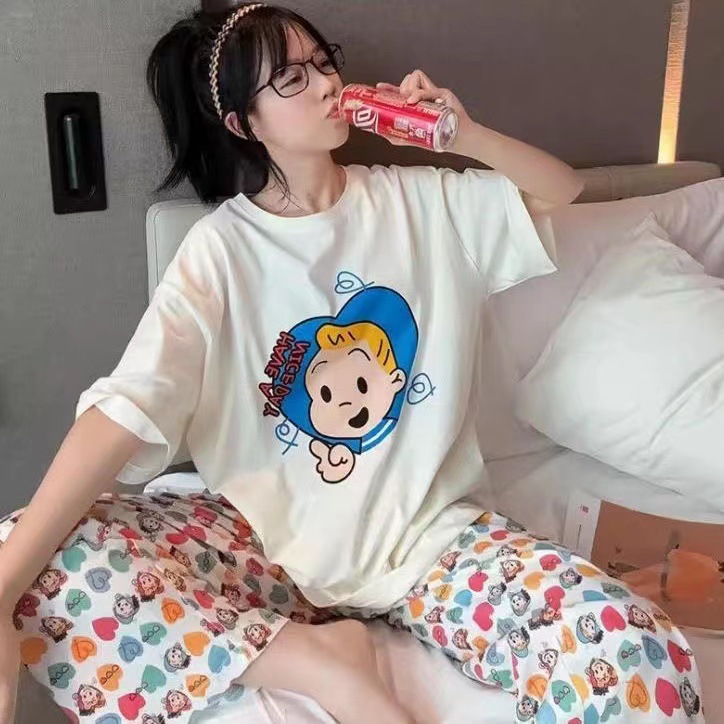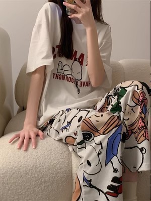 睡衣女短袖长裤夏季卡通可爱2024新款卡通春夏天家居服套装可外穿