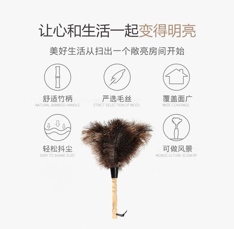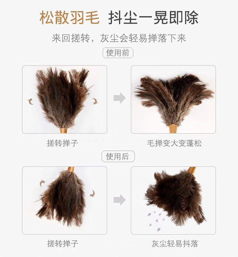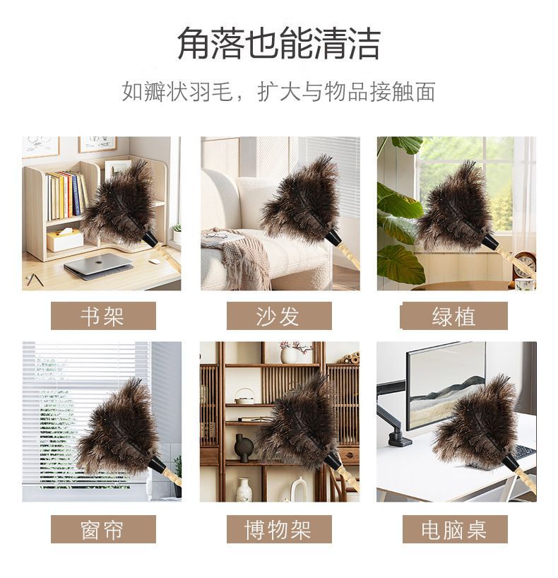 鸵鸟毛掸子除尘扫灰加厚不掉毛鸡毛掸子家用清灰不带静电除尘掸子