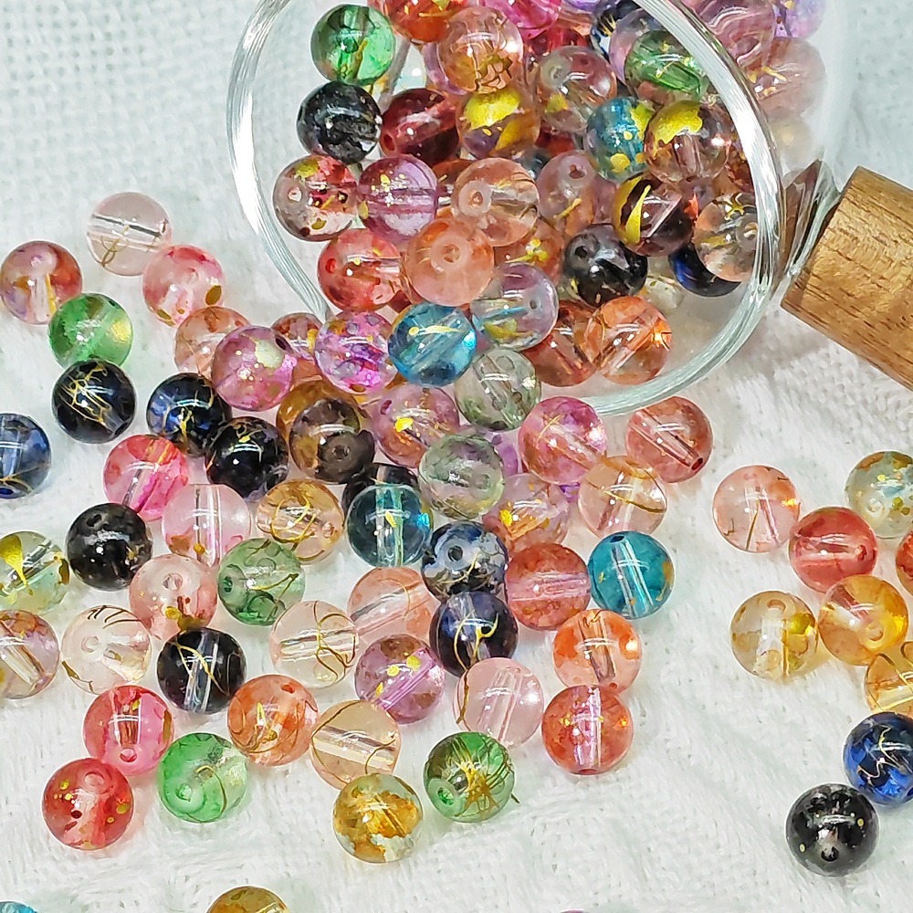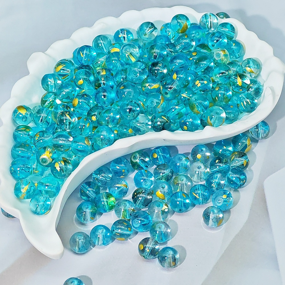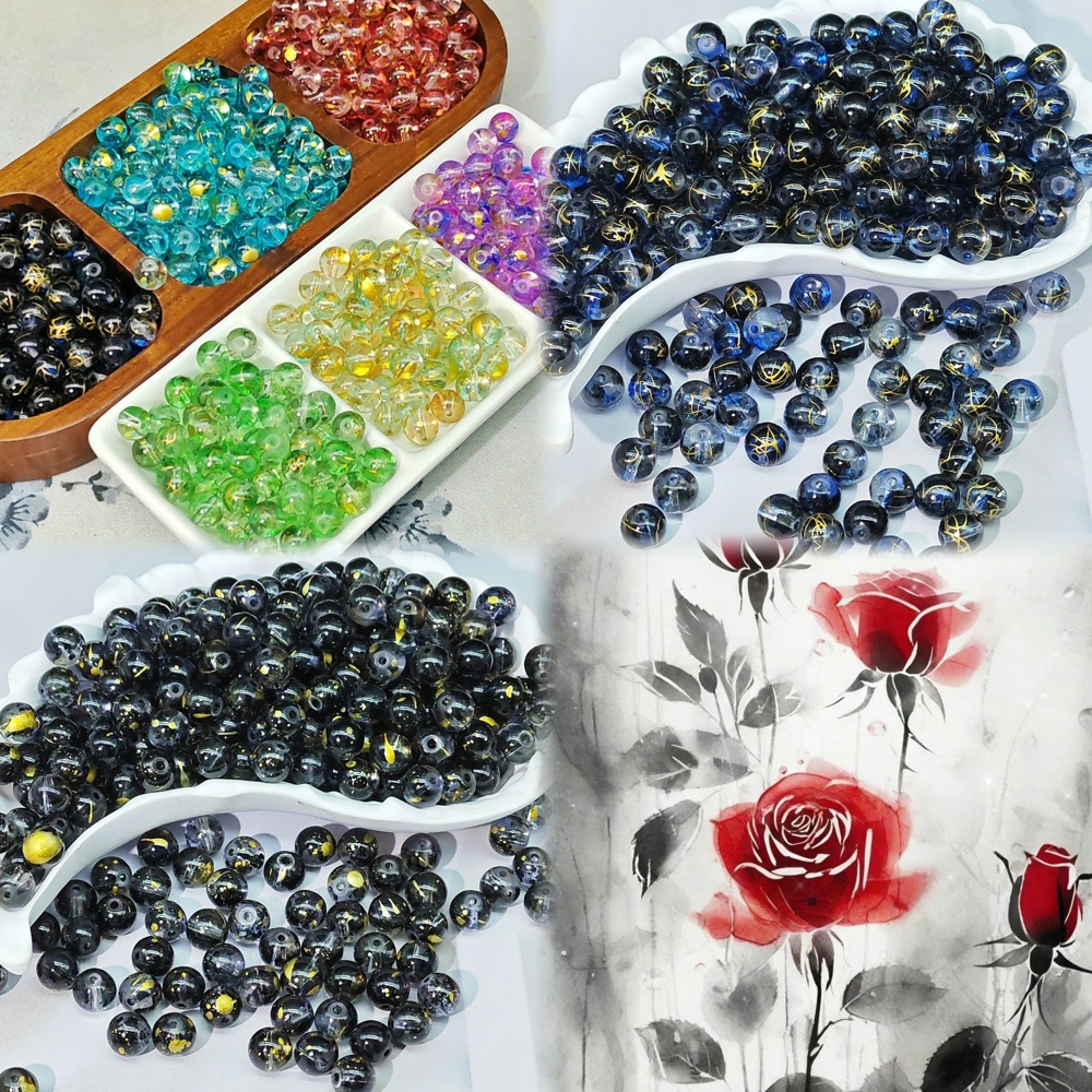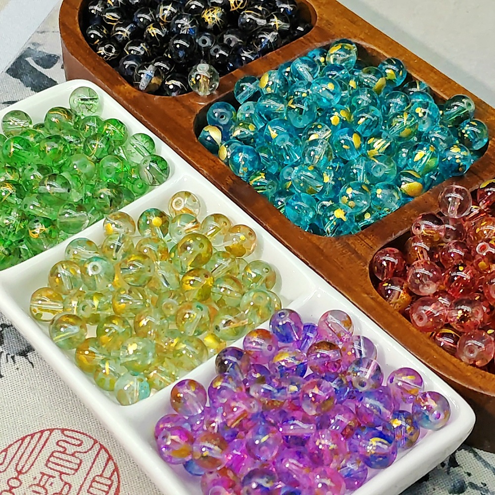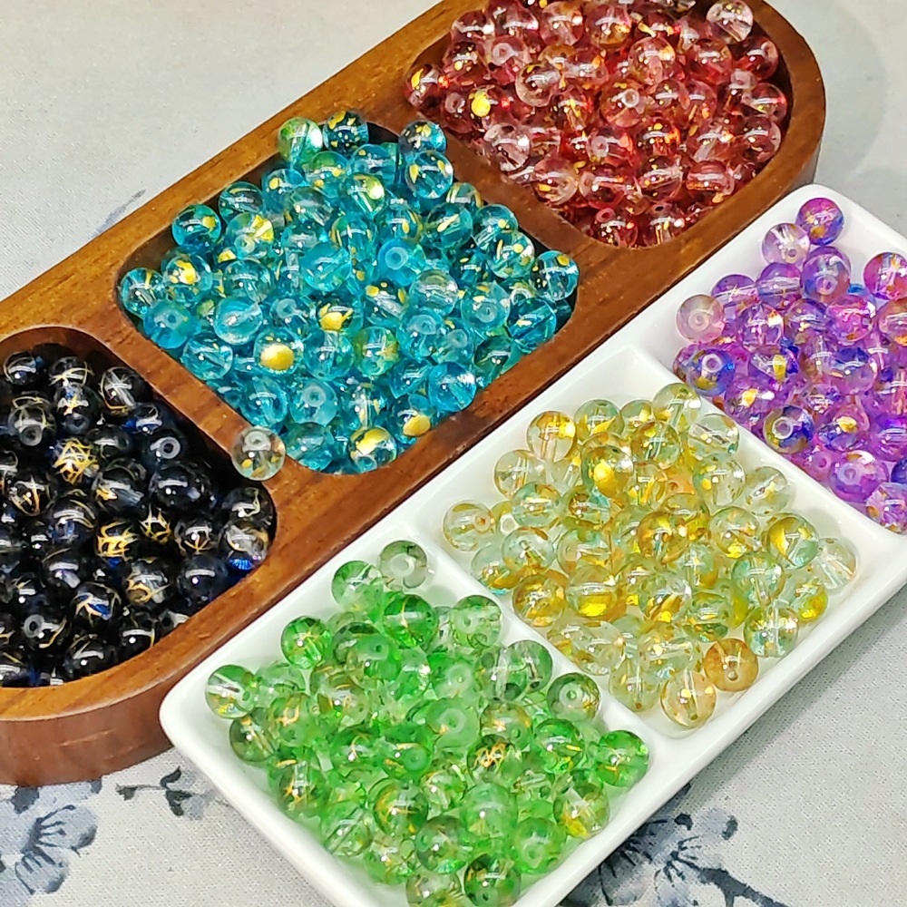 8/10mm玻璃冰透水墨晕染洒金珠散珠DIY手工项链手串饰品配件批发
