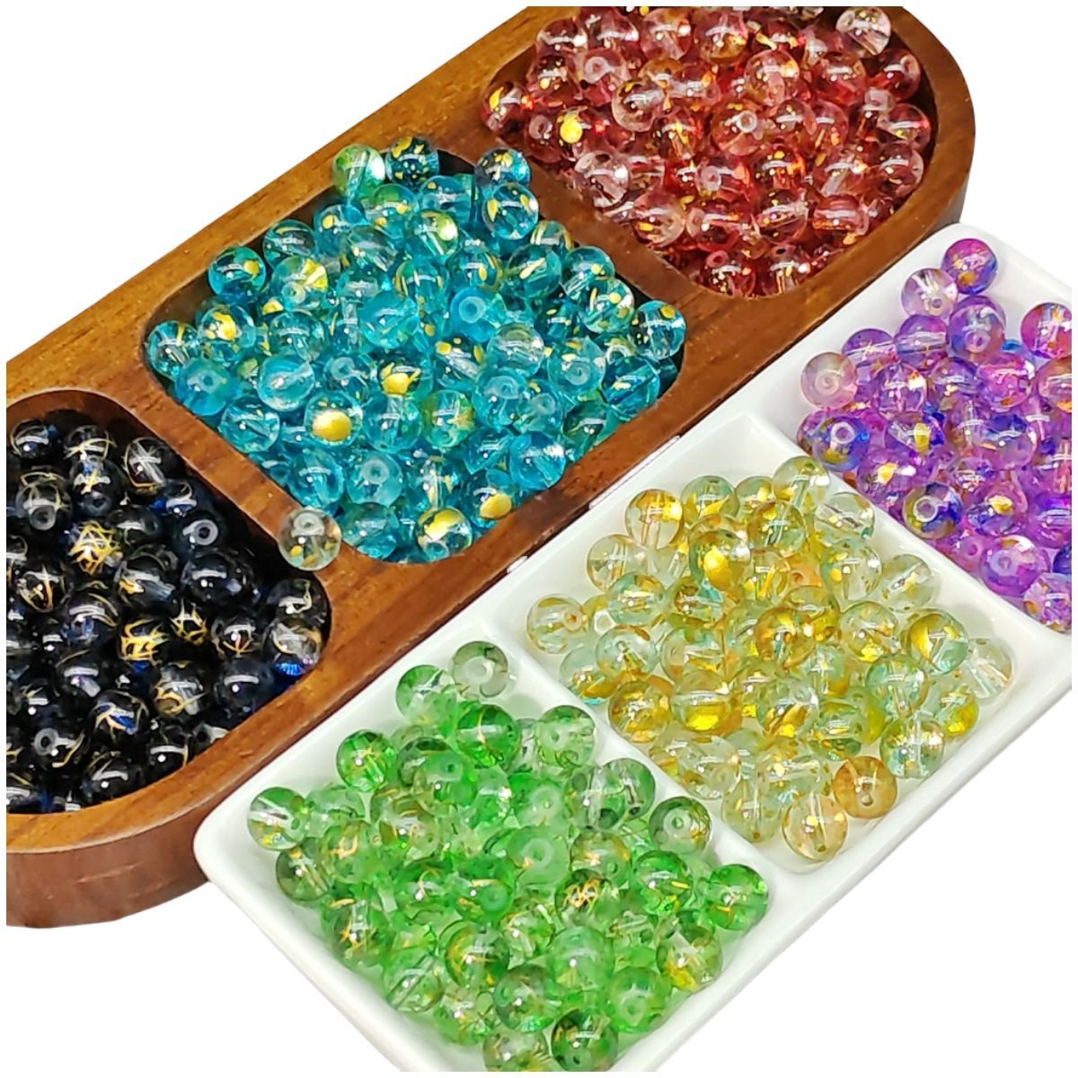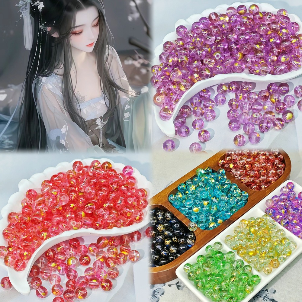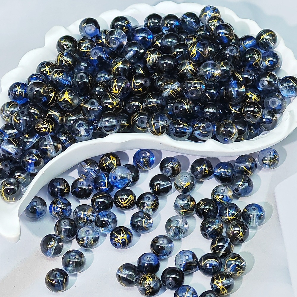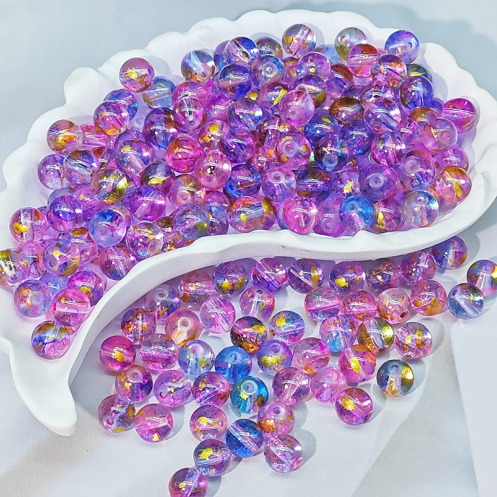 8/10mm玻璃冰透水墨晕染洒金珠散珠DIY手工项链手串饰品配件批发