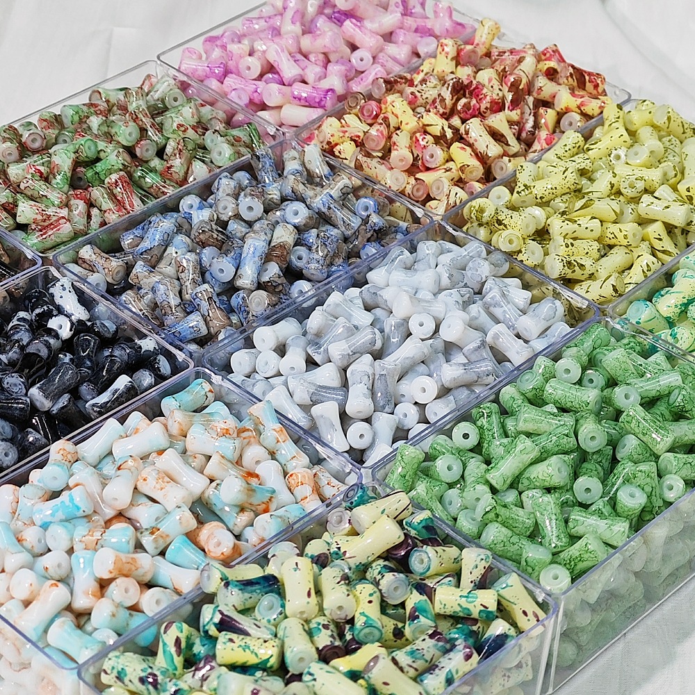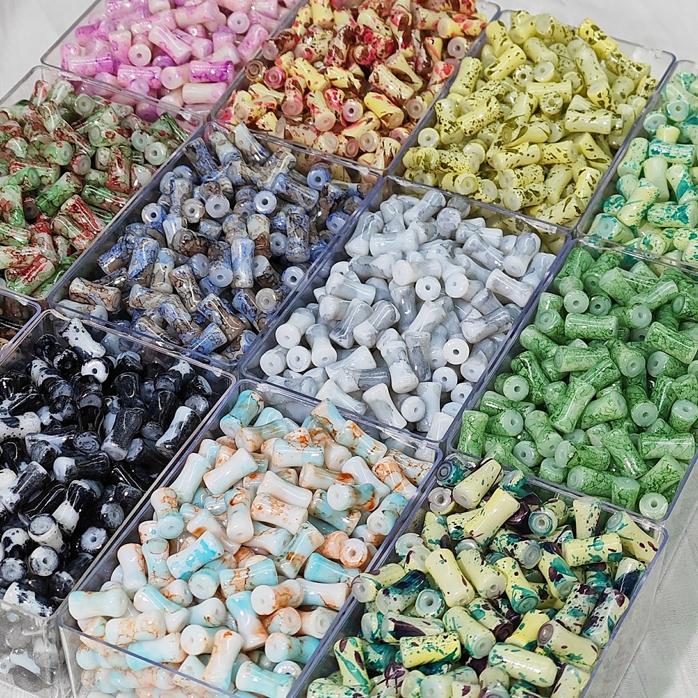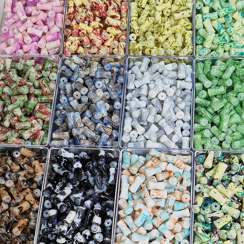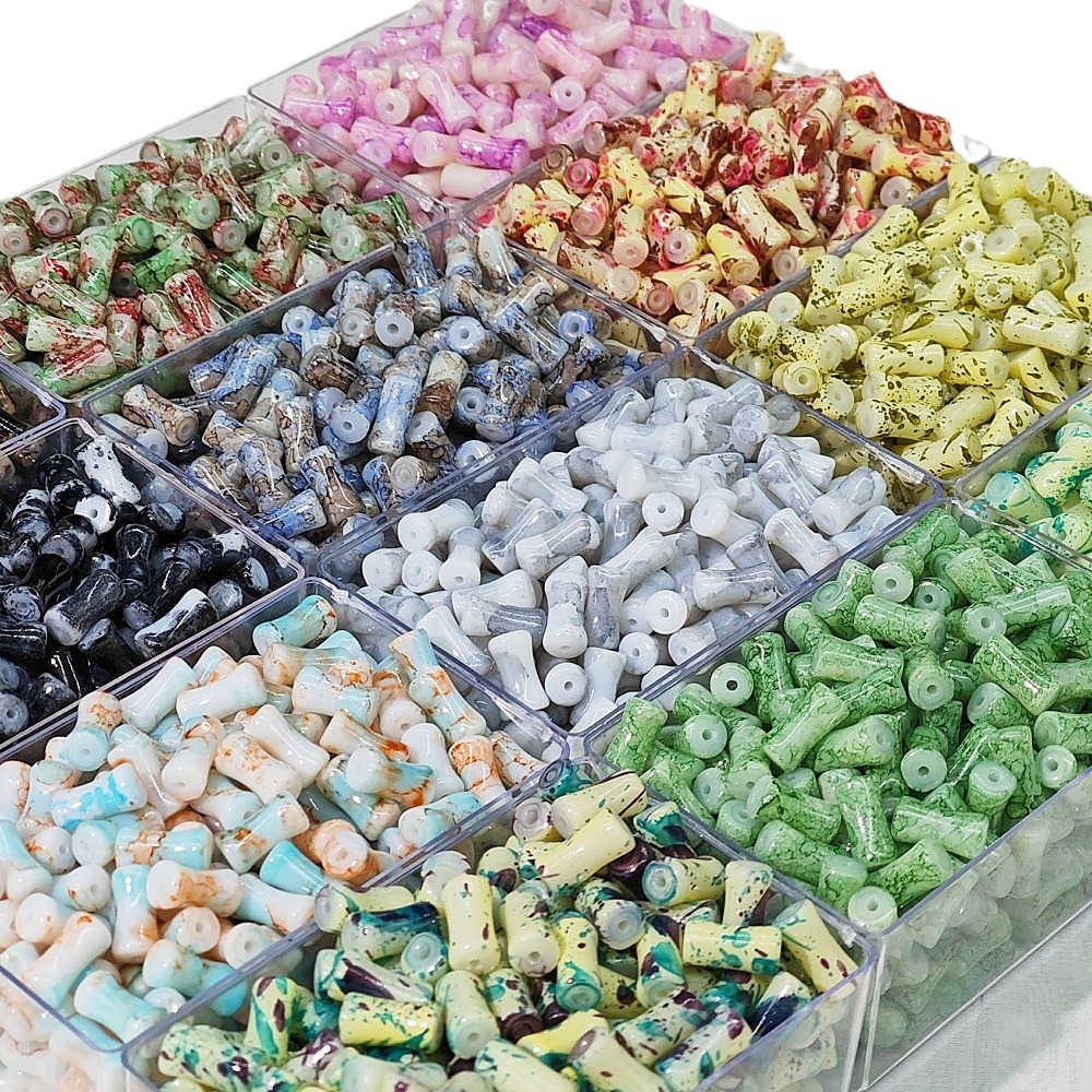 6X12mm彩绘竹节珠琉璃散珠水墨竹节管珠直孔DIY手工饰品手链制作
