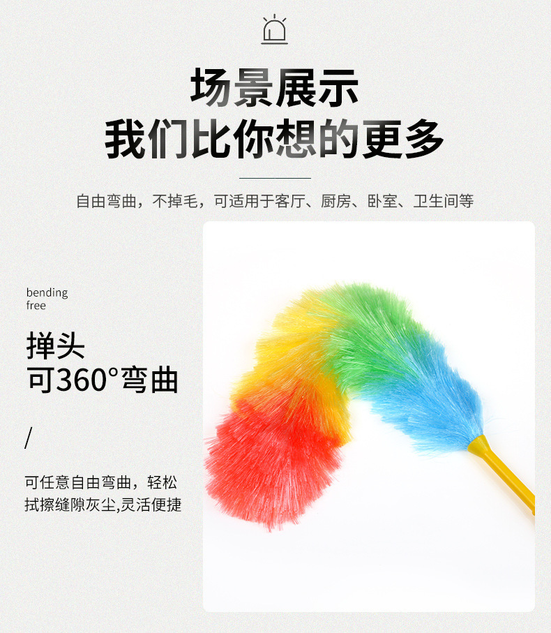 厂家直供彩色超细塑料鸡毛掸子可弯曲清洁刷家用静电除尘掸批发