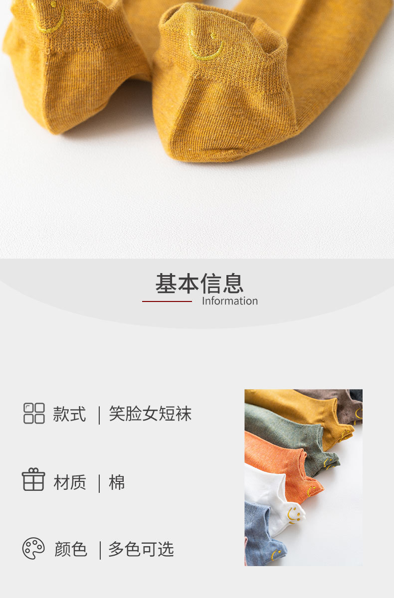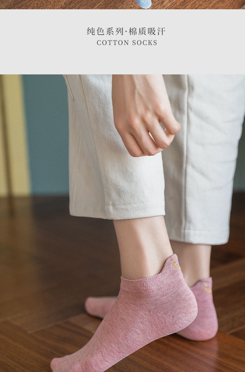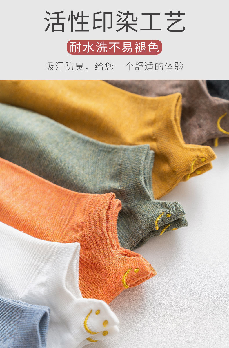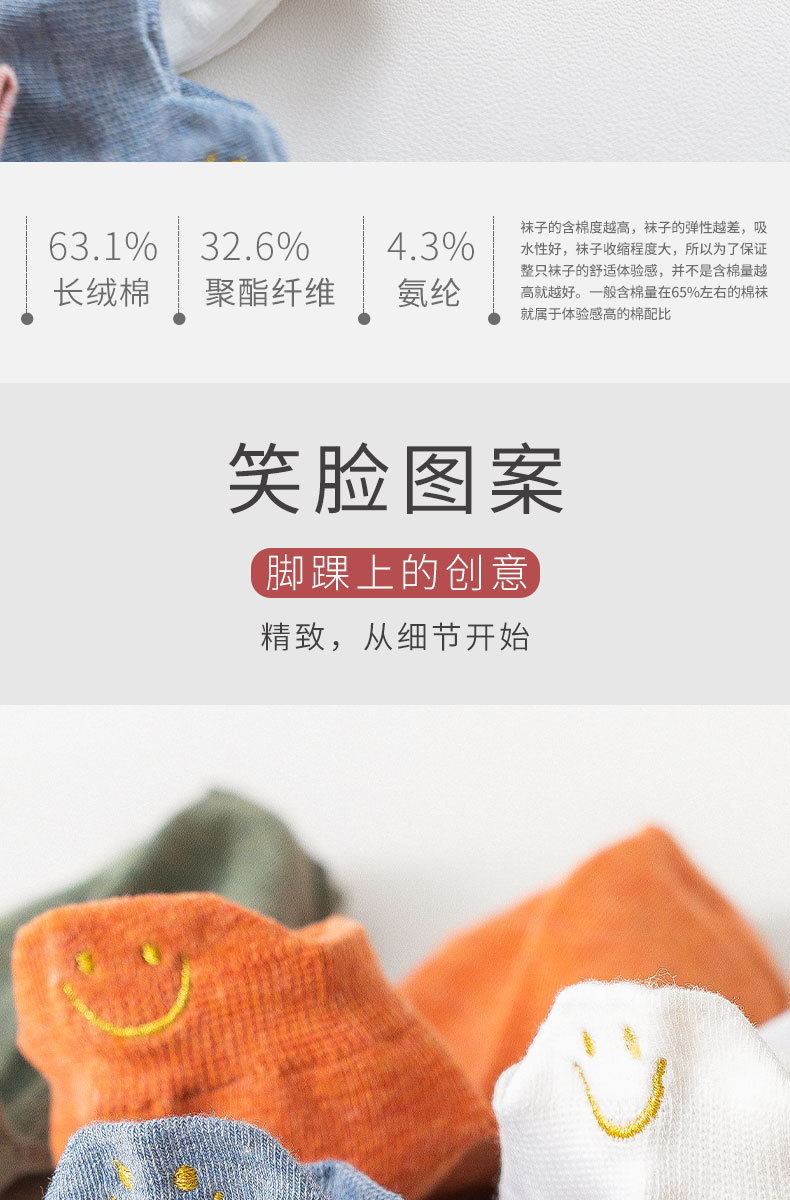 袜子女士夏季短袜薄款精梳棉浅口笑脸春夏可爱日系夏低帮短筒女袜
