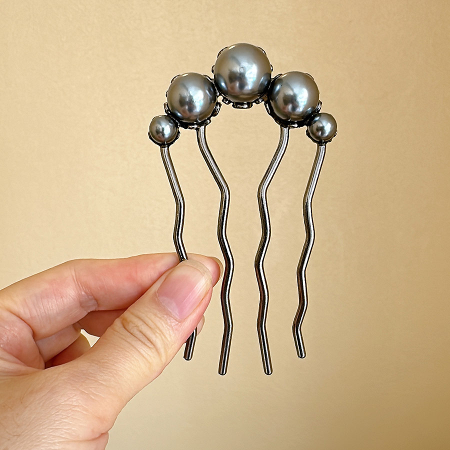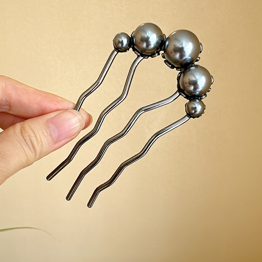 懒人丸子头盘发神器四齿插梳发梳后脑勺倒插U型固定发夹金属盘发