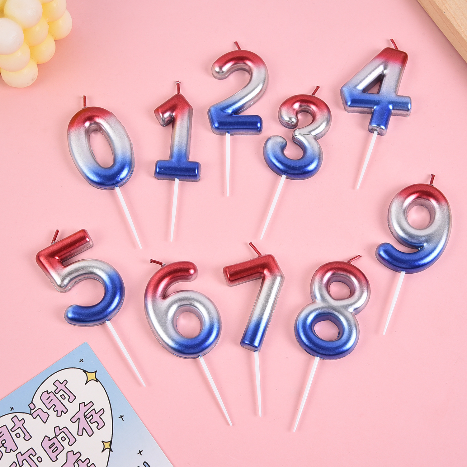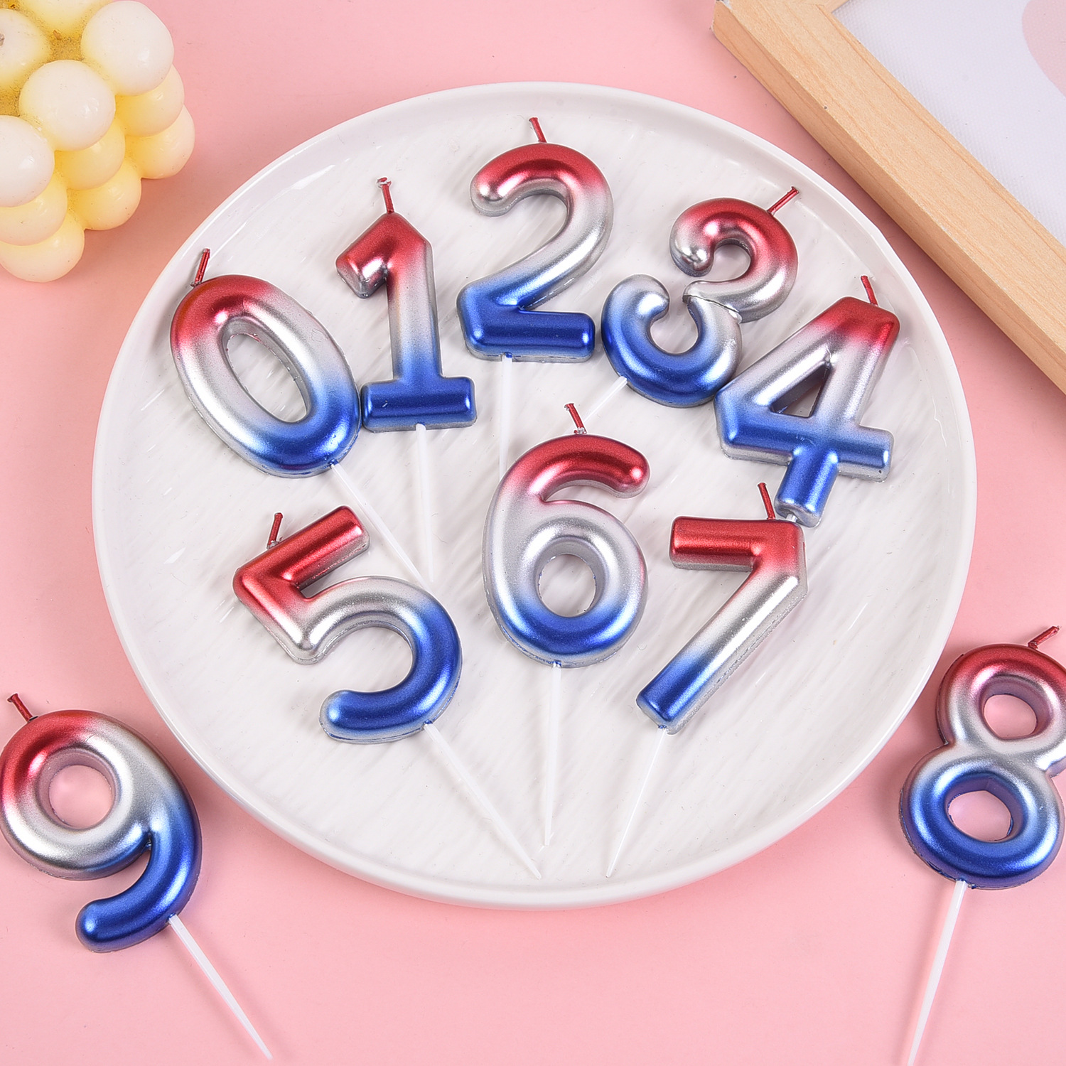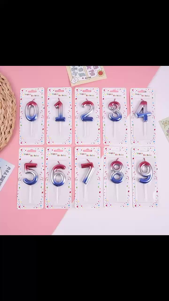 跨境电商专供渐变大数字0-9生日蜡烛派对庆生甜品台蛋糕装饰用品
