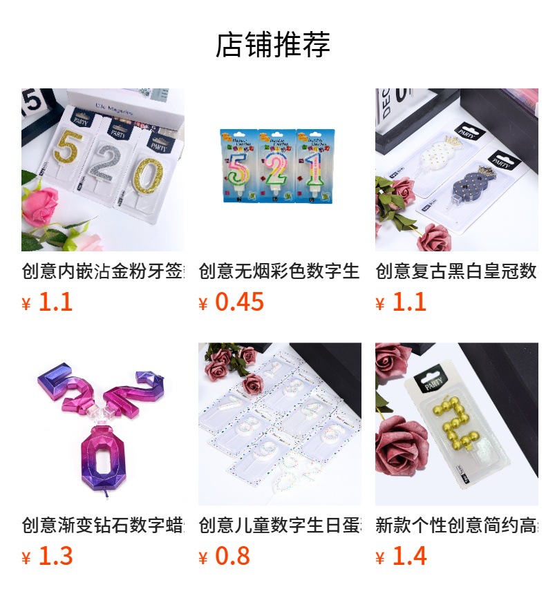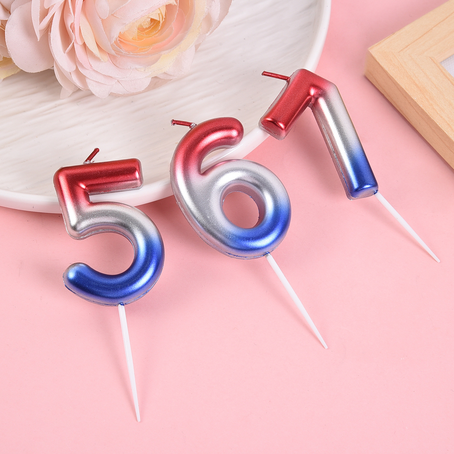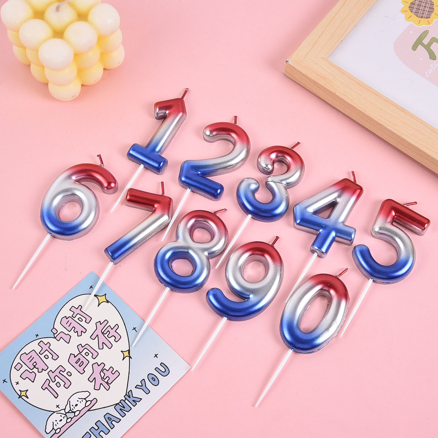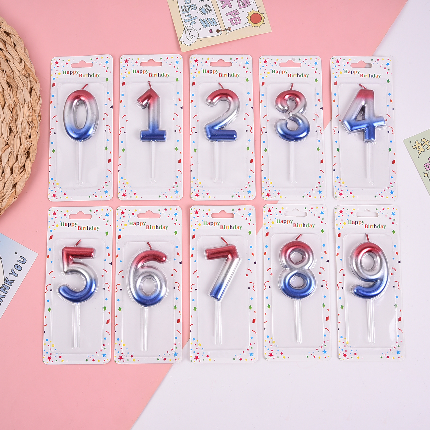 跨境电商专供渐变大数字0-9生日蜡烛派对庆生甜品台蛋糕装饰用品