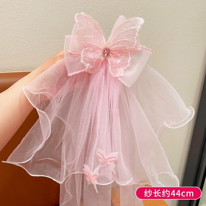 公主飘纱皇冠发夹儿童可爱韩版头纱发饰女孩超仙立体亮钻拍照头饰