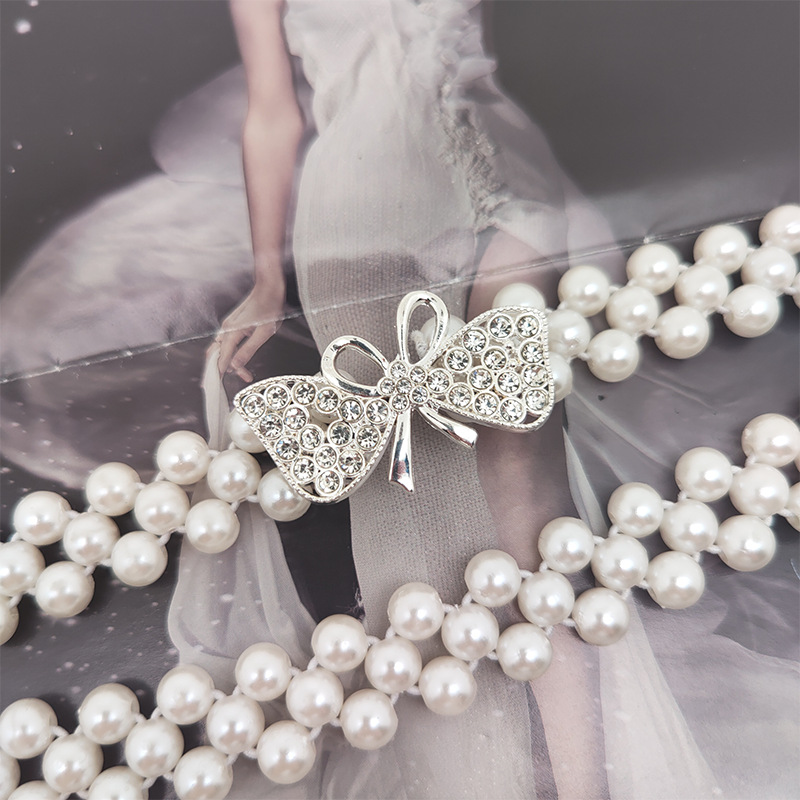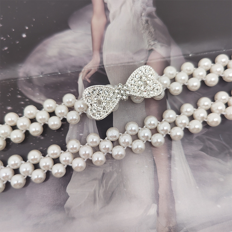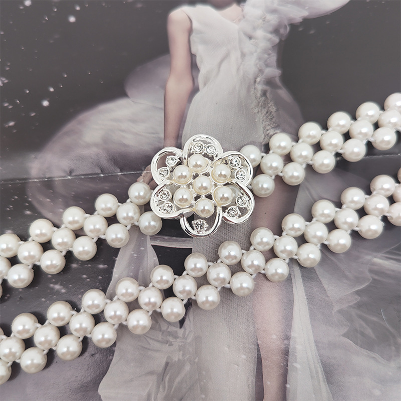 新款珍珠弹力腰带女士西装时尚腰链女连衣裙装饰松紧腰封腰带女款