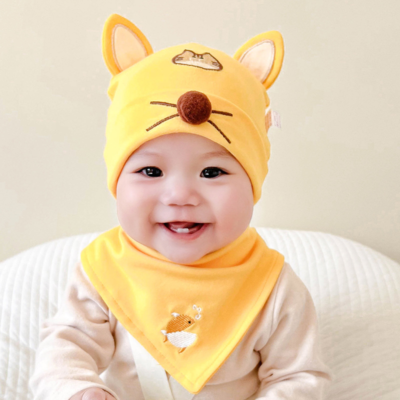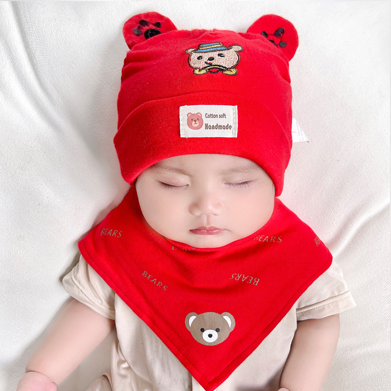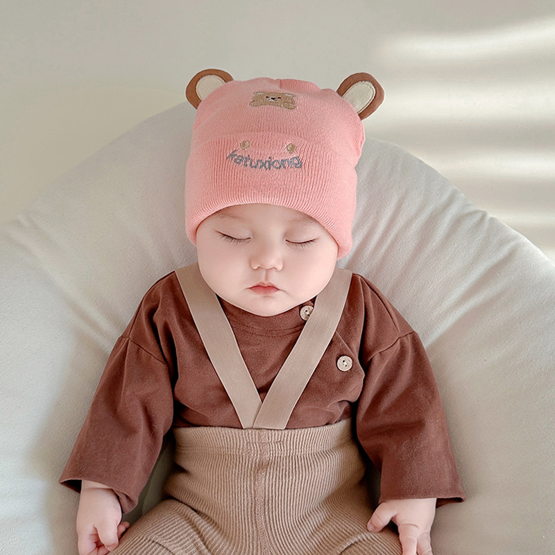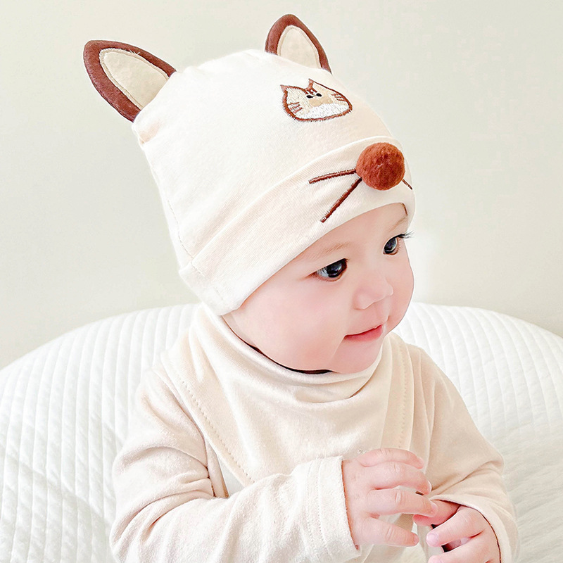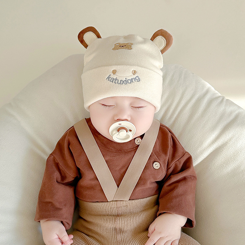 卡图熊婴幼儿帽子春秋3-6-12月男女宝宝套头帽棉布百天睡觉胎帽