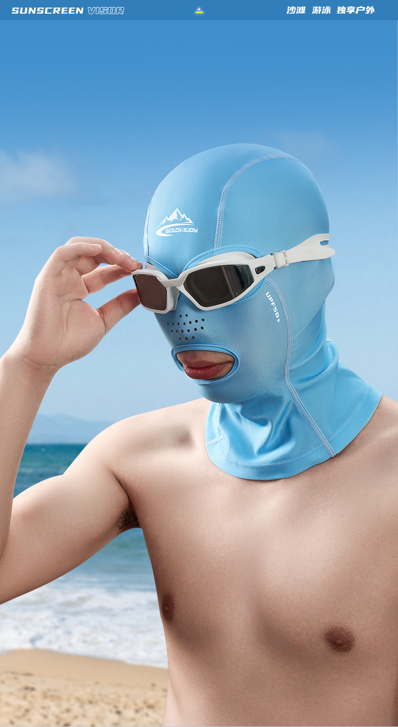 脸基尼游泳防晒头罩男女户外玩水漂流透气防紫外线海边头罩XTJ126
