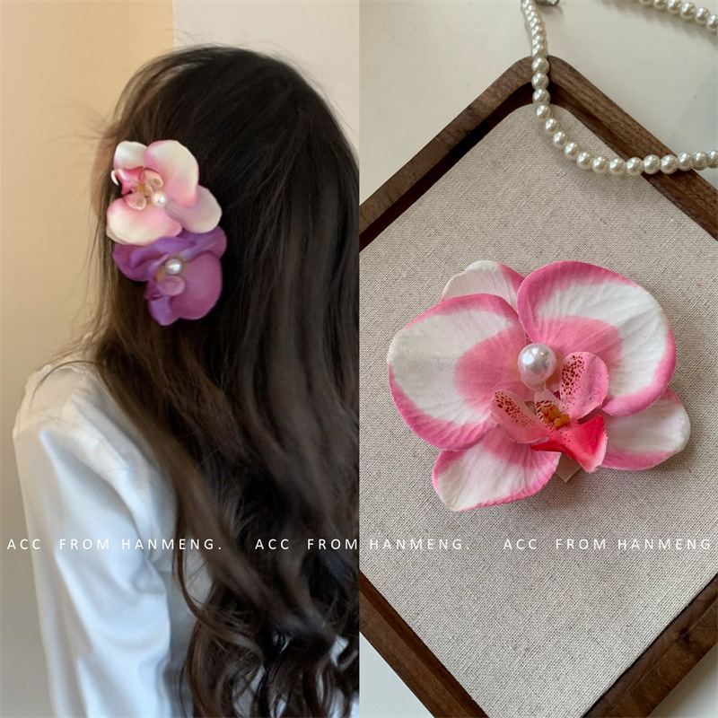高级感氛围晕染色蝴蝶兰花朵抓夹发夹组合边夹发饰花朵造型头饰女