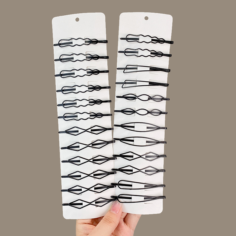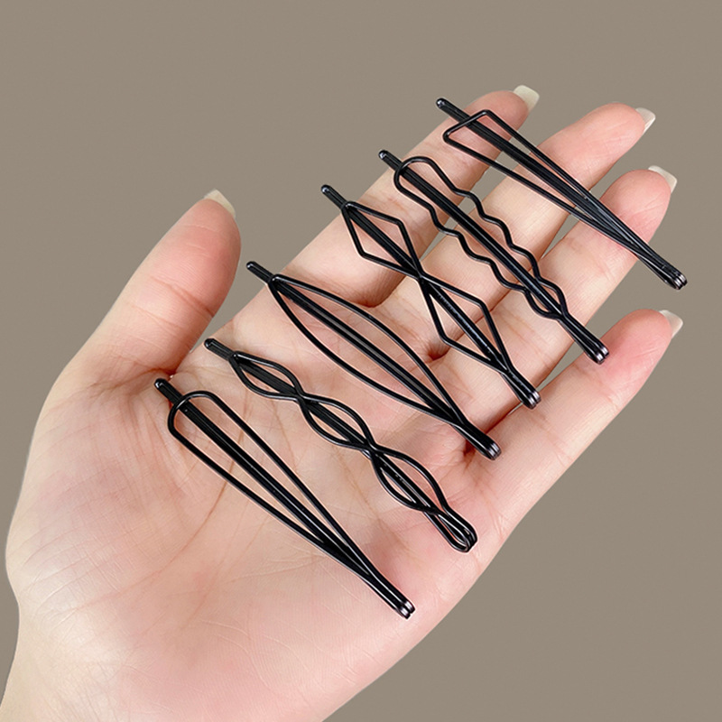 黑色几何线夹水滴三角波浪刘海夹黑色隐形后脑勺无痕碎发夹一字夹