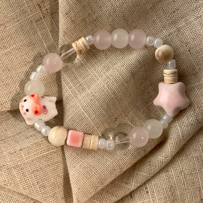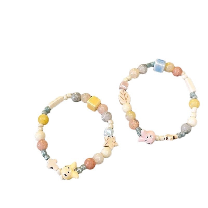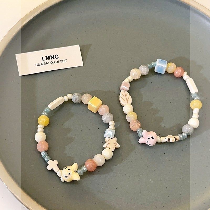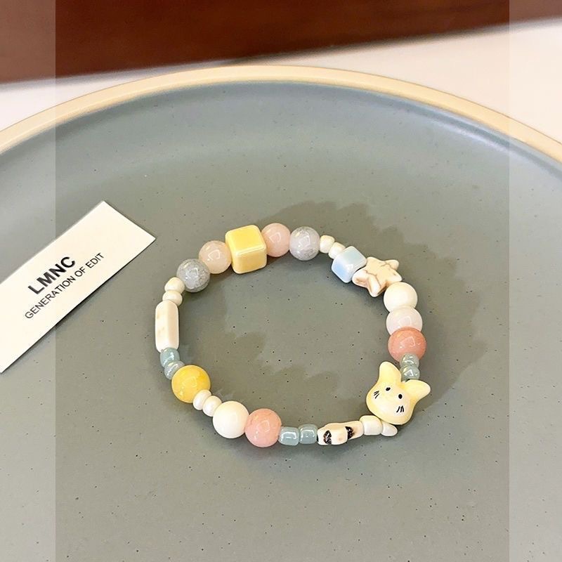 小清新彩色陶瓷猫咪手链女夏季2024年新款可爱甜美串珠手串手饰品