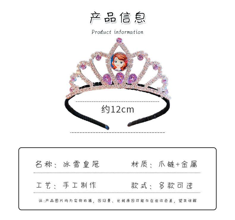 儿童皇冠头饰女童王冠发卡冰雪爱莎公主不伤发发箍女孩生日发饰批