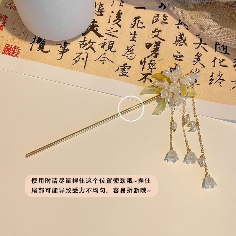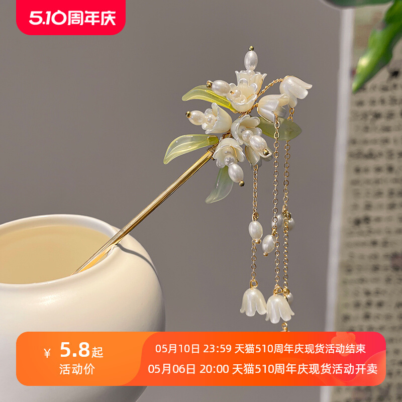 珍珠铃兰花流苏发簪女古风发张簪子旗袍汉服步摇新中式发钗头饰夏