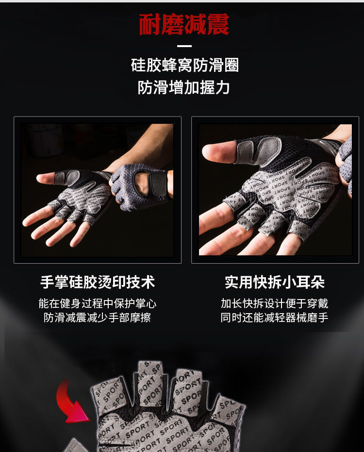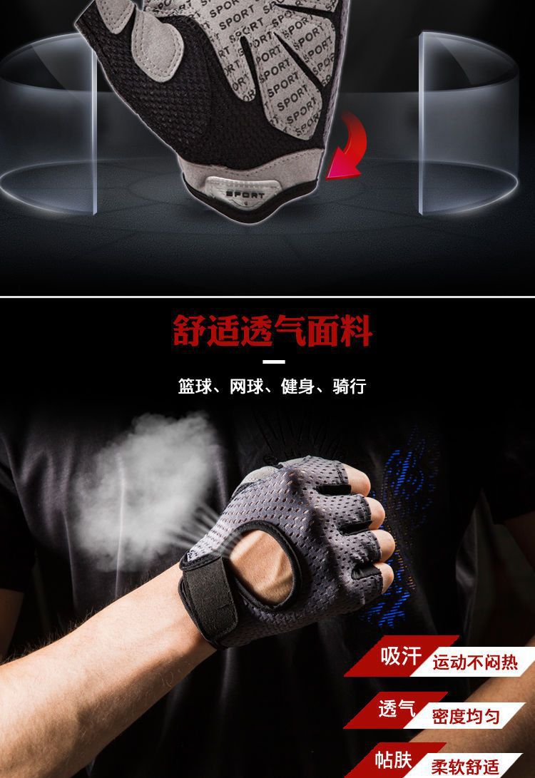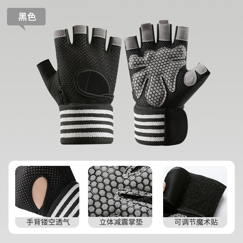 健身半指手套男透气运动手套女哑铃器械训练防滑防起茧护手腕一体