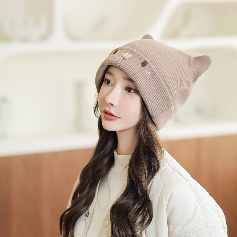 新款春秋冬季可爱防风保暖针织月子帽 毛线护头绣花孕妇产妇帽