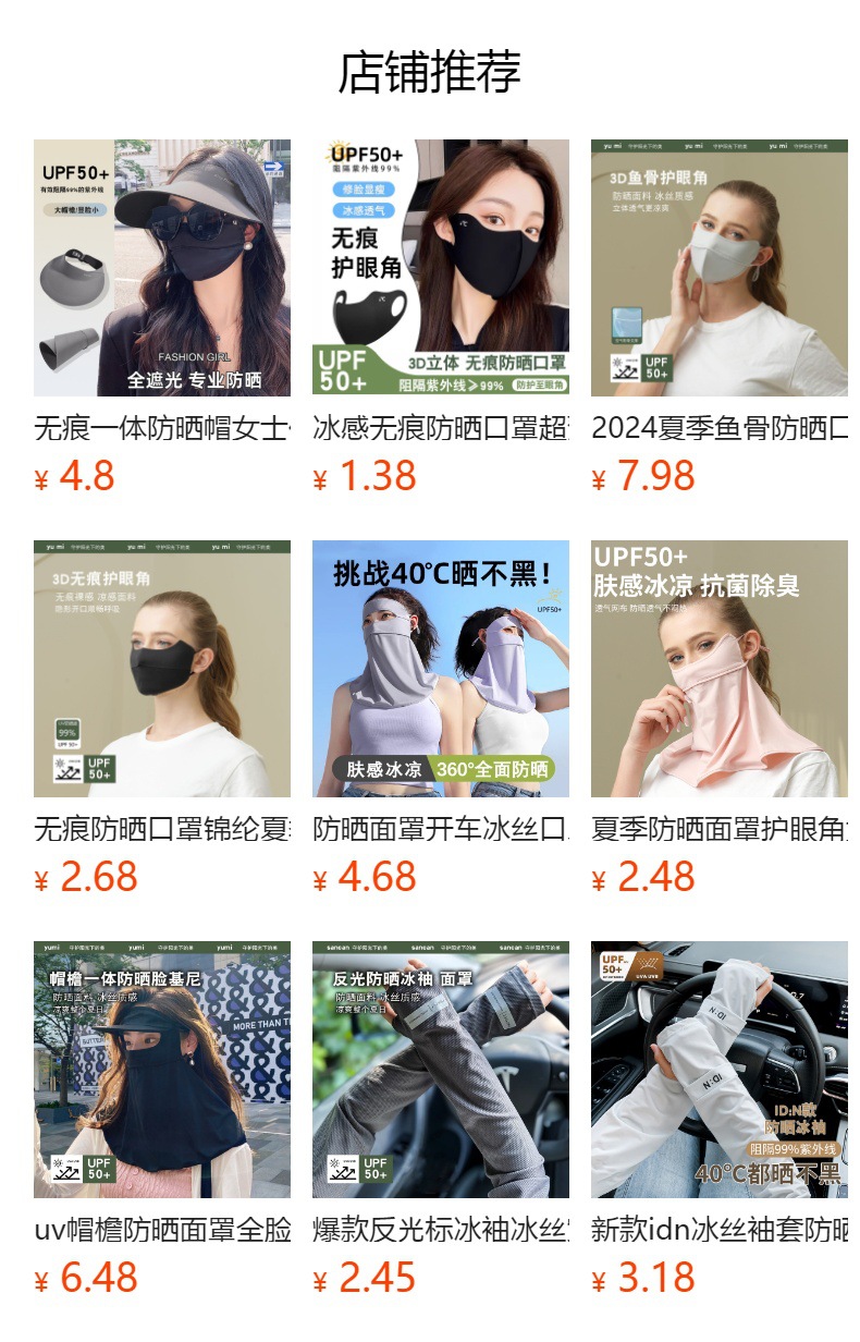防晒面罩冰丝口罩透气遮阳面部防紫外线全脸基尼夏季骑行脸罩开车