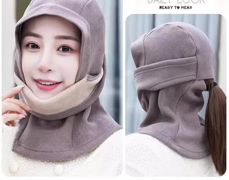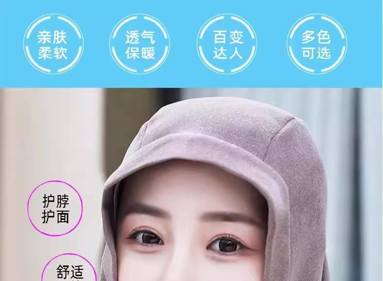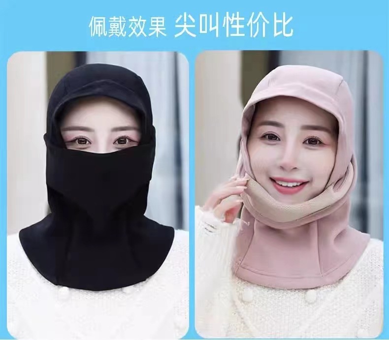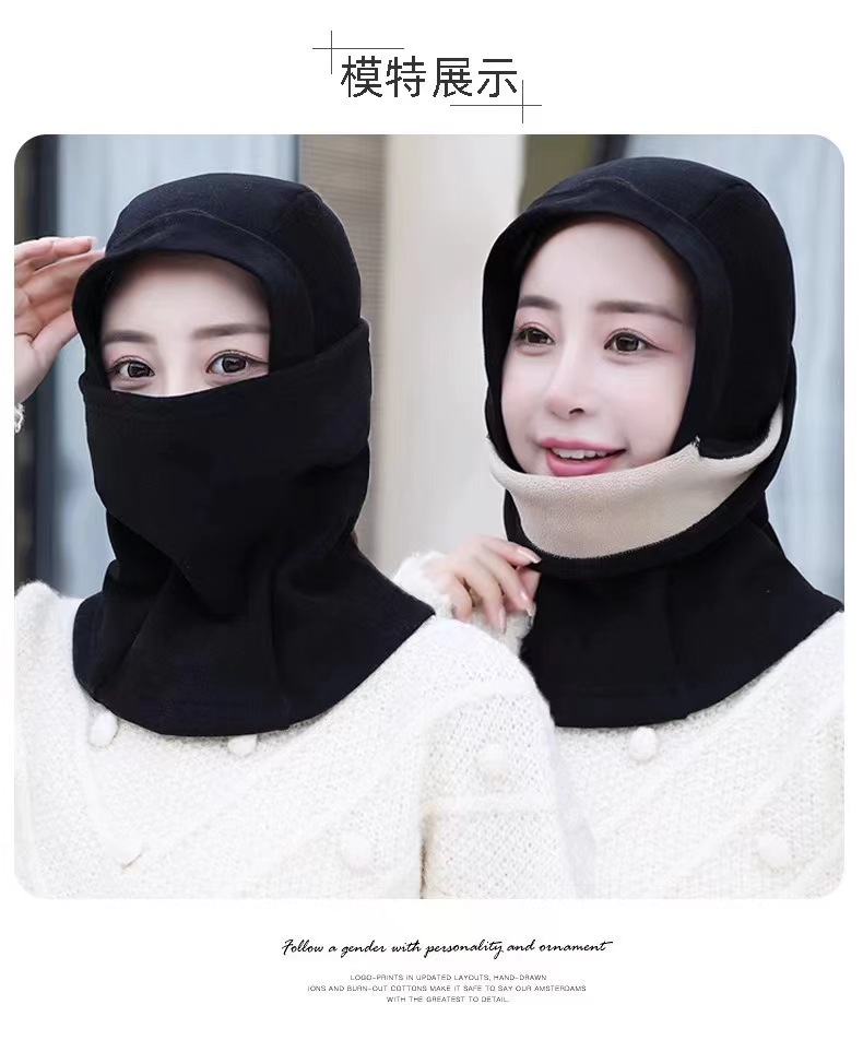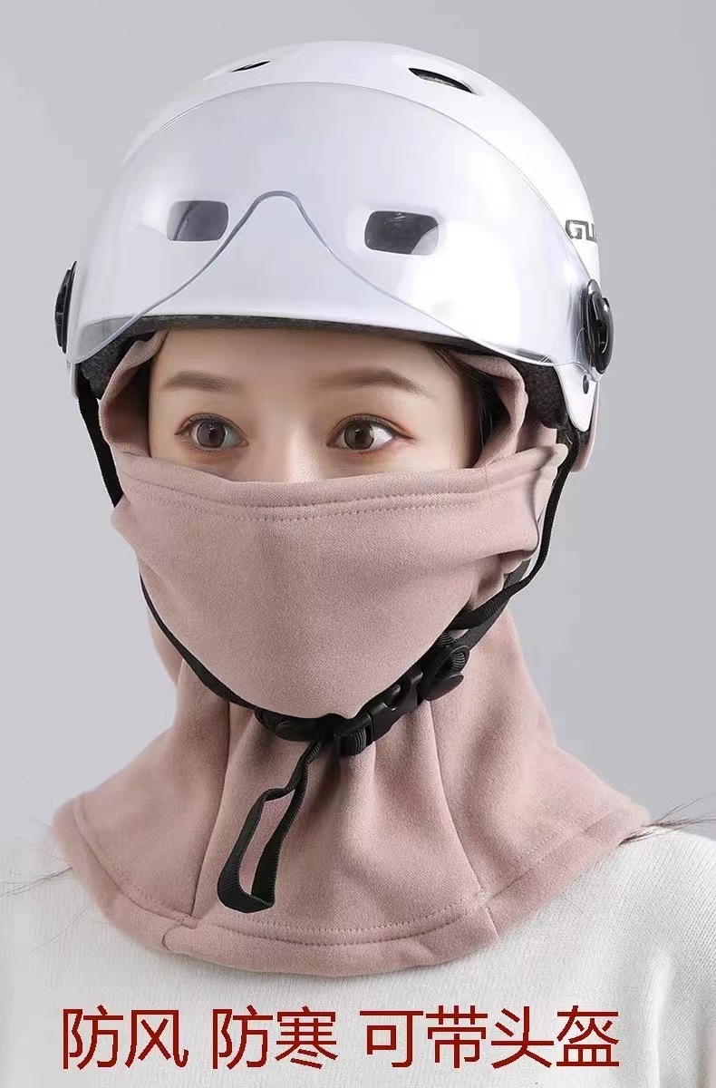 电动车保暖帽子围脖一体帽女冬天骑车加绒加厚新款防风套头帽保暖