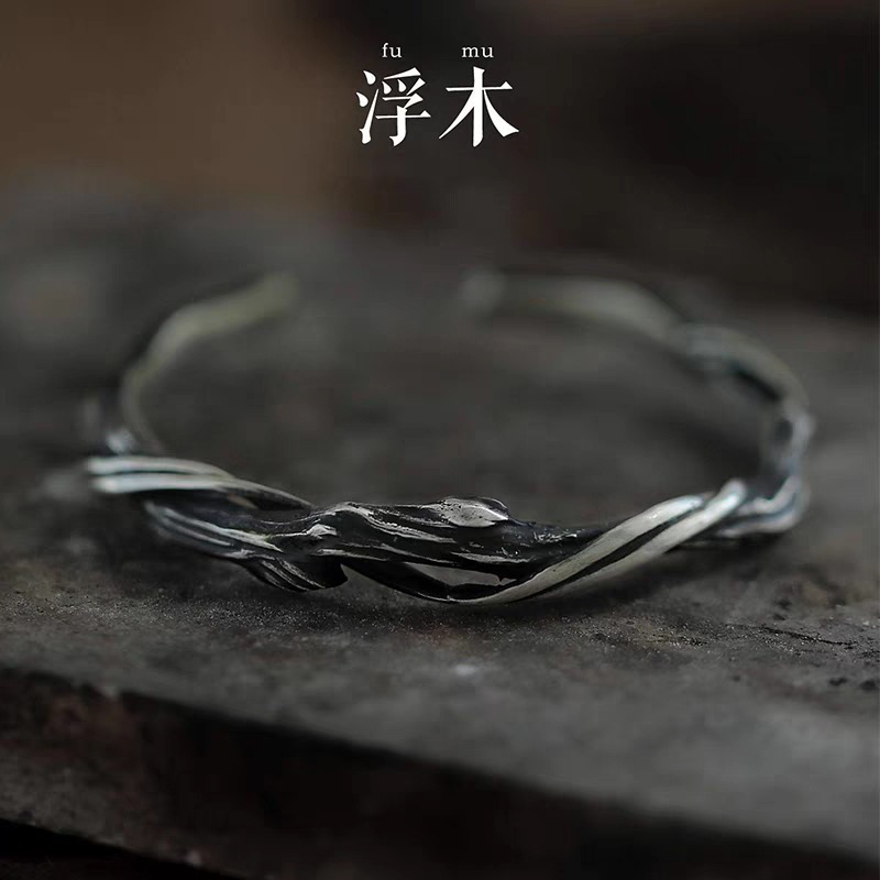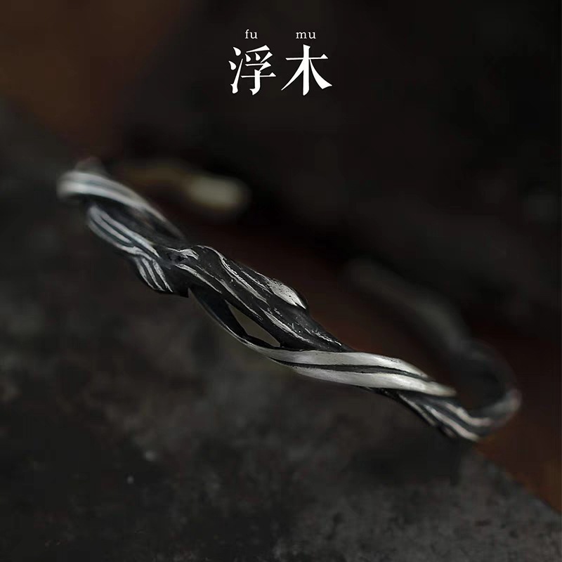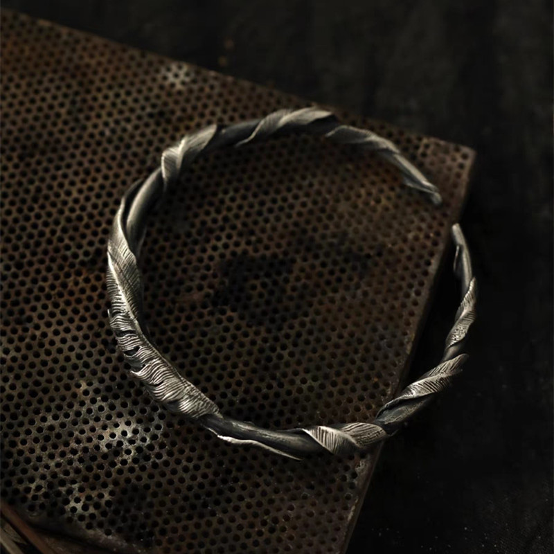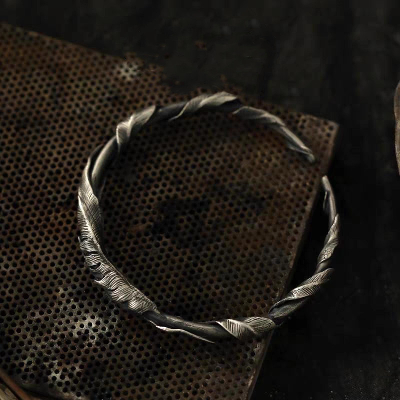 原创设计复古铜羽毛手镯男款时尚高级感开口可调节镯子生日礼物