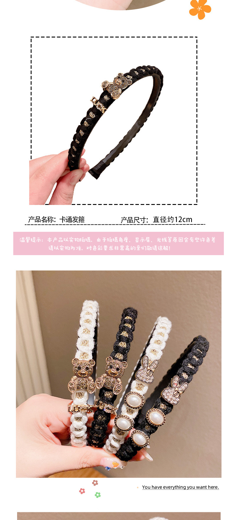 儿童可爱兔子发箍小女孩卡通头箍发饰压发防滑发卡子压碎发不伤发
