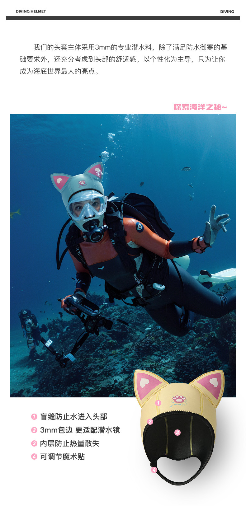 户外潜水帽子男女士高弹加厚保温沙滩防晒卡通浮潜头套泳帽XMZ276
