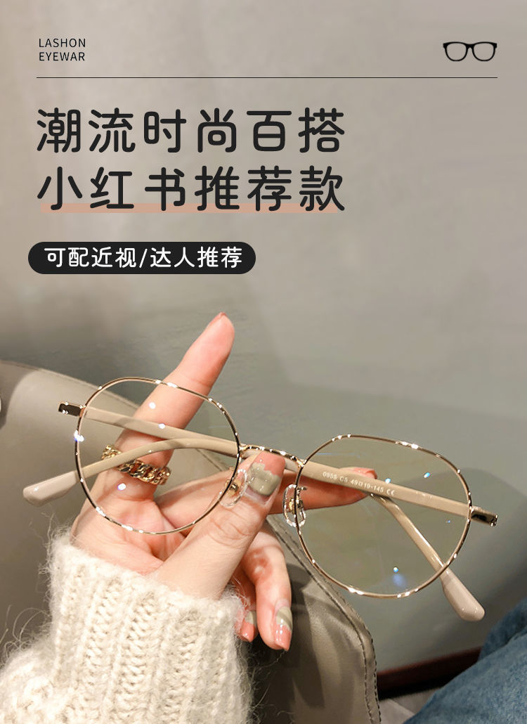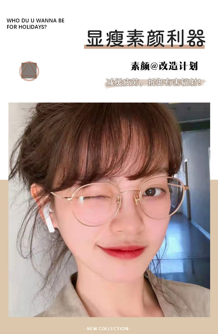 学生韩版近视眼镜女防蓝光光学网红高颜值素颜圆脸显脸小平光眼镜