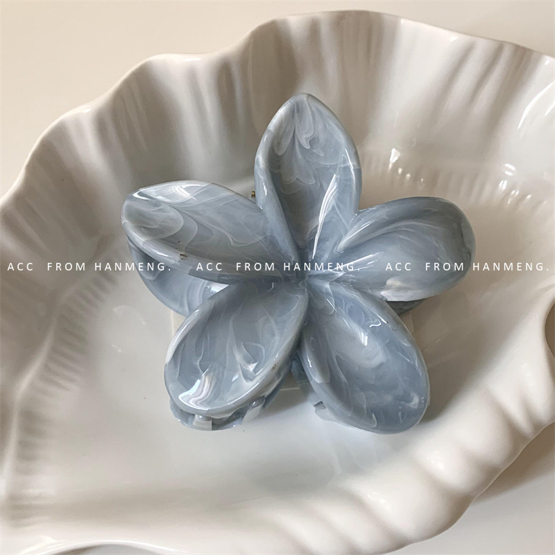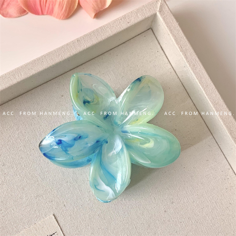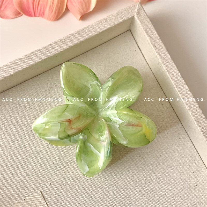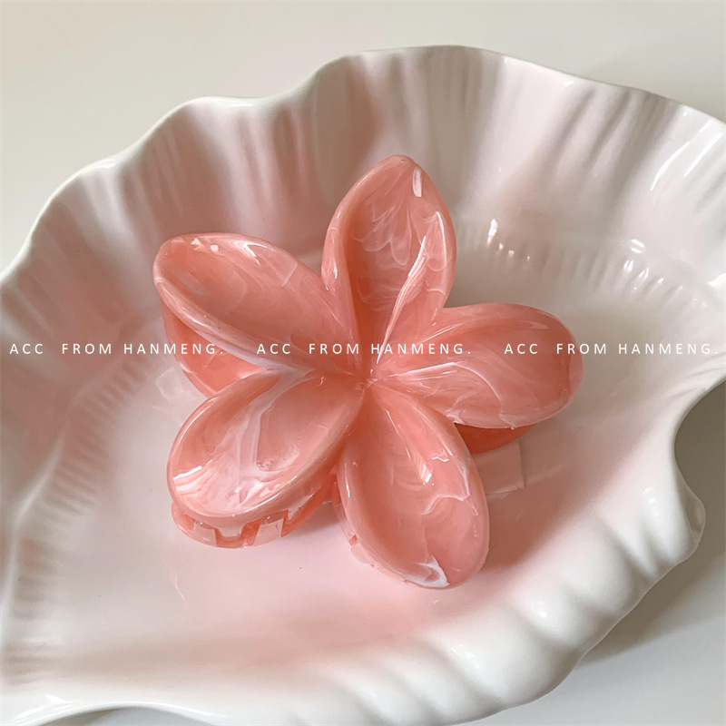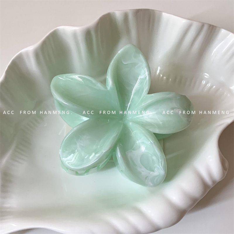2024夏天冰透感粉绿鸡蛋花抓夹鲨鱼夹甜美清新大理石纹盘发夹发抓