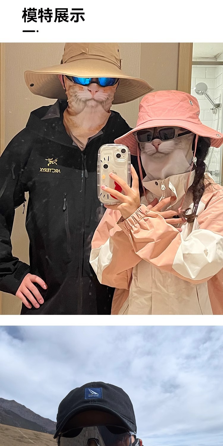 2024夏季新款遮全脸护颈一体防晒面罩3d立体夏季动物猫咪挂耳防晒