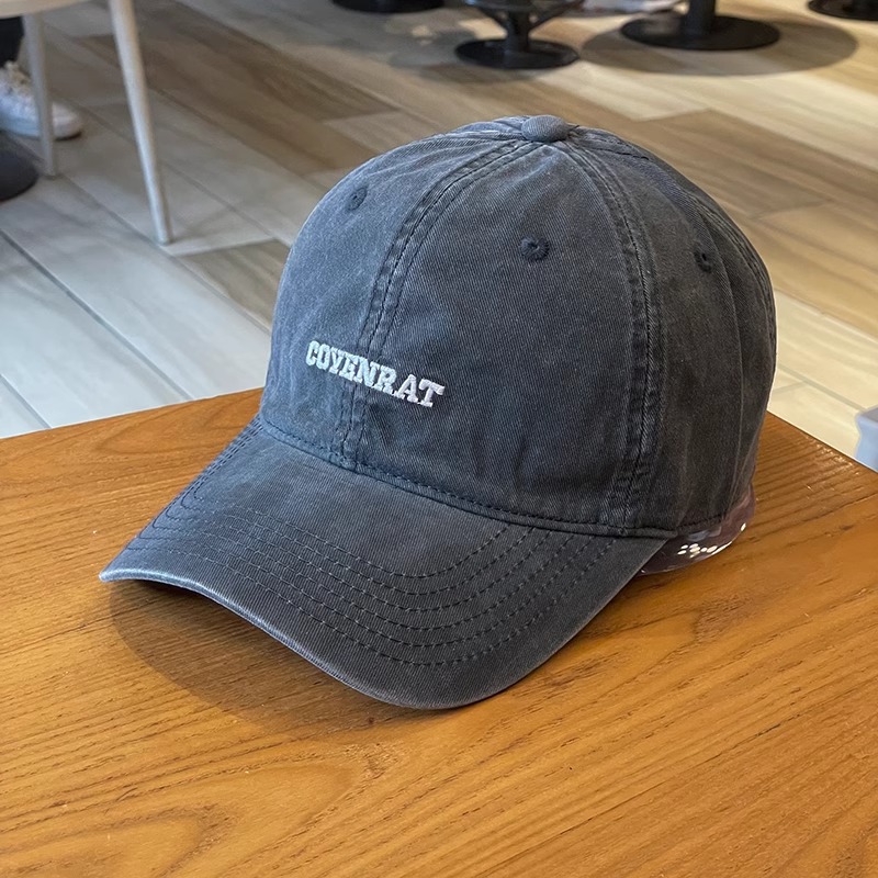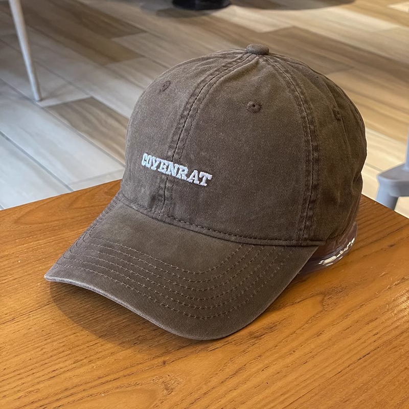 早秋小众潮牌字母刺绣棒球帽复古水洗软顶鸭舌帽男女宽檐显脸小
