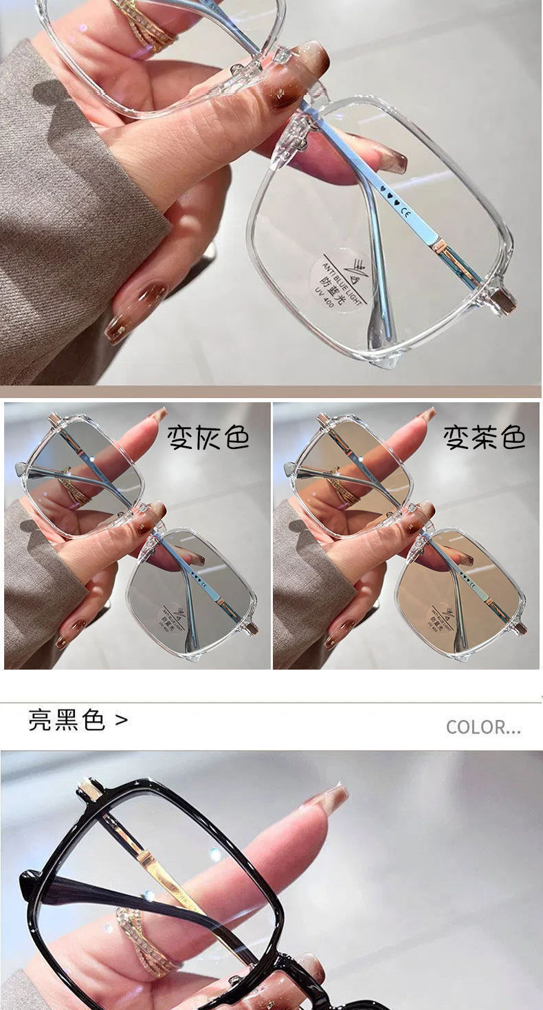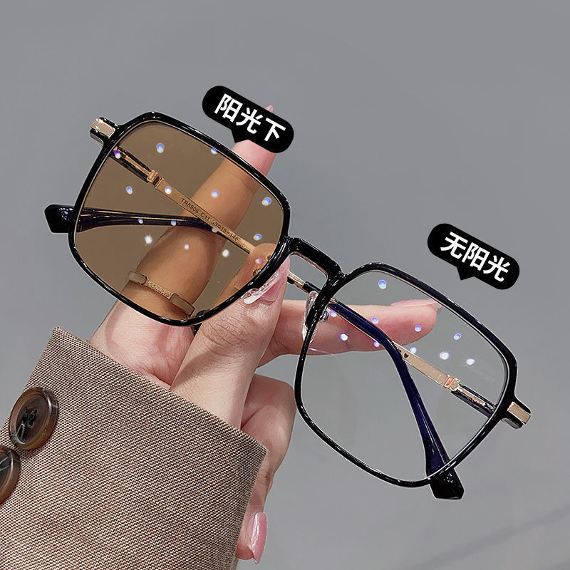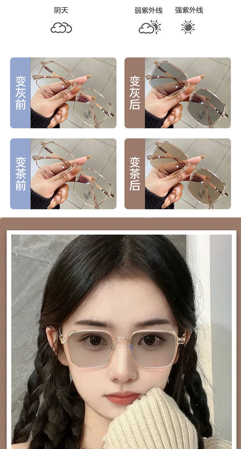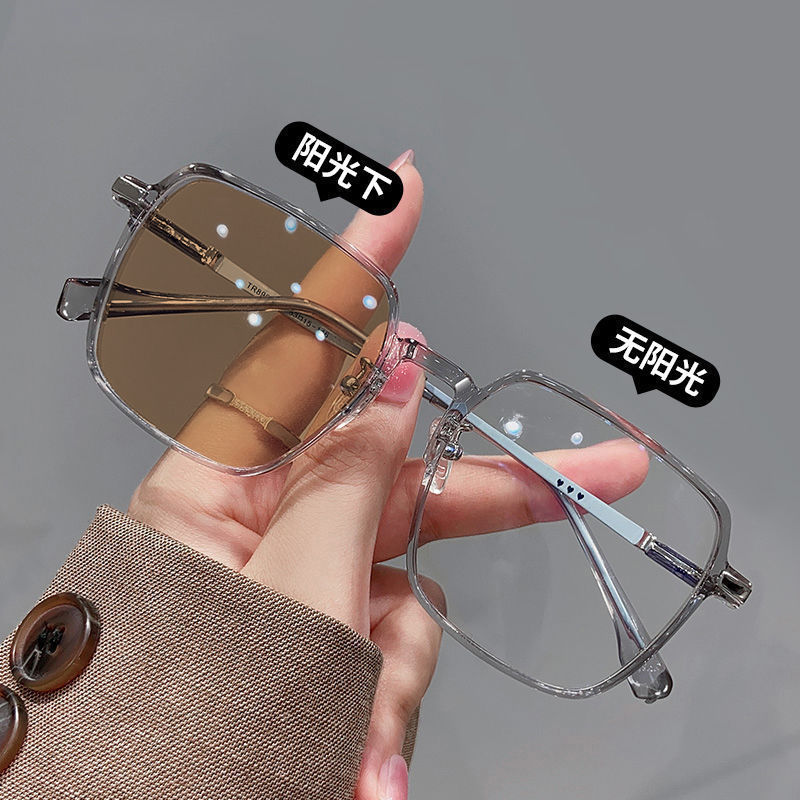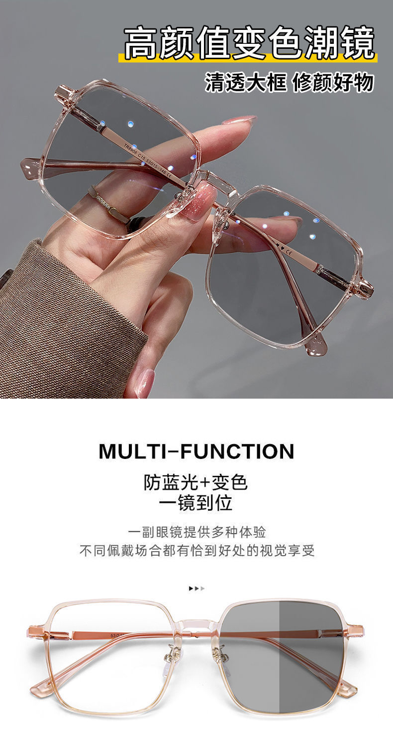 新款感光变色近视眼镜女款无度数平光镜高清轻盈防紫外线眼镜框架