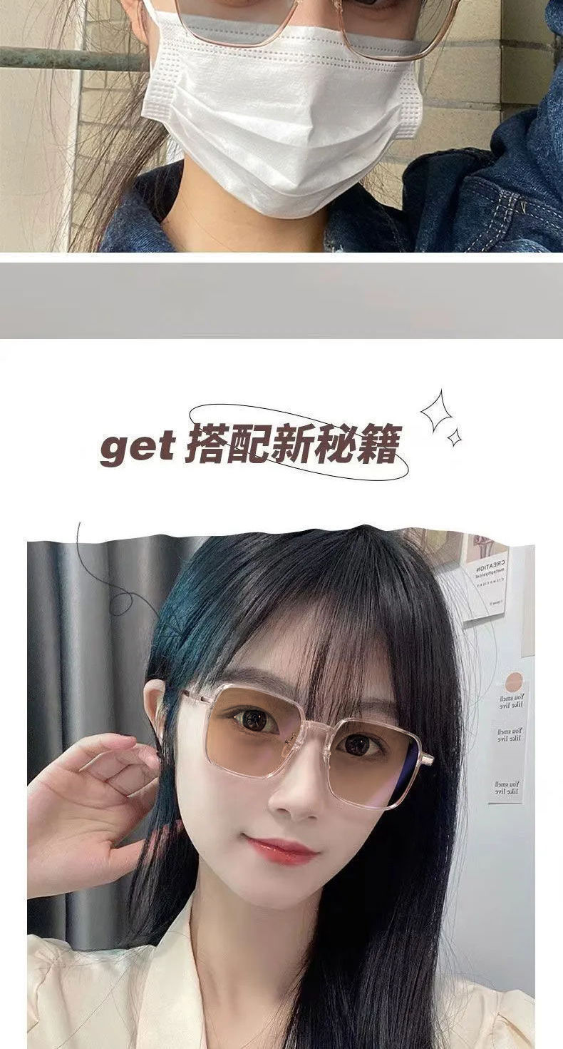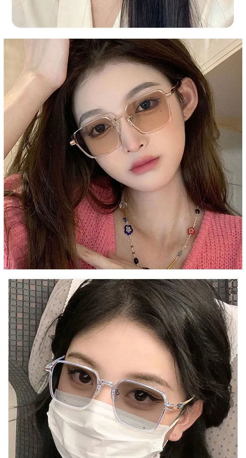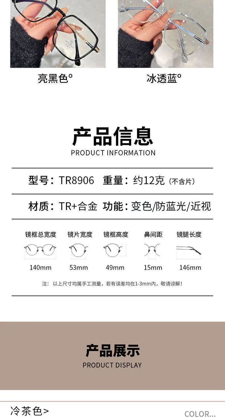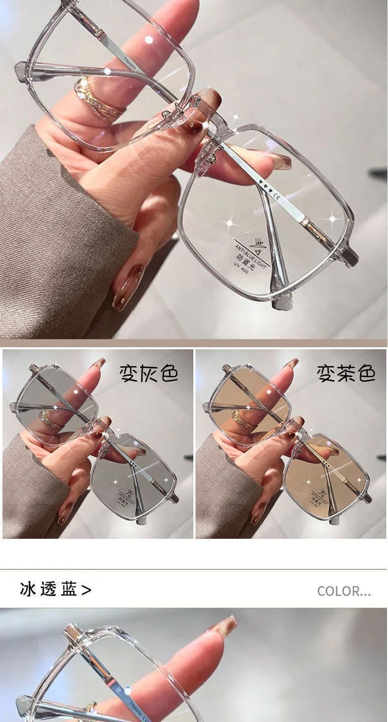 新款感光变色近视眼镜女款无度数平光镜高清轻盈防紫外线眼镜框架