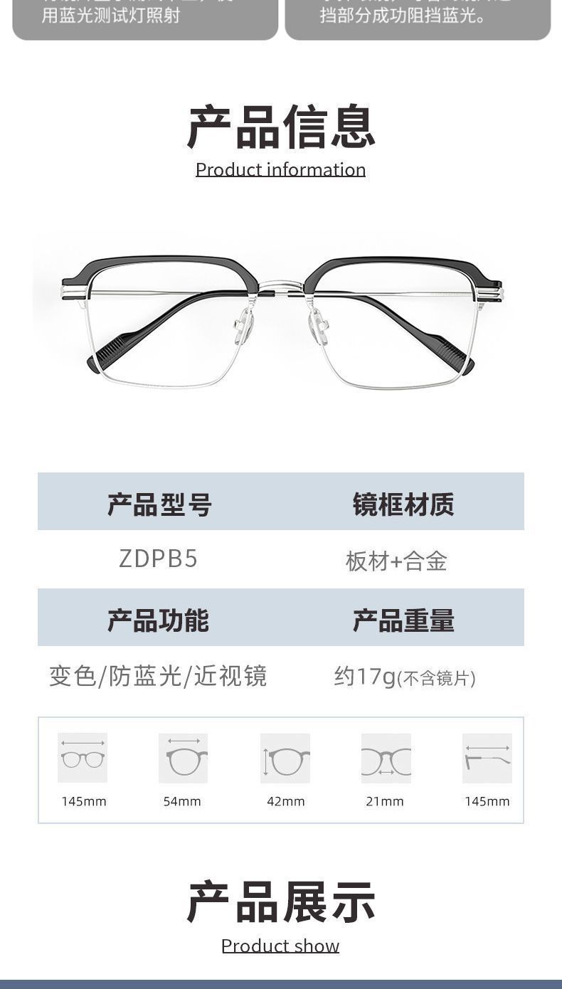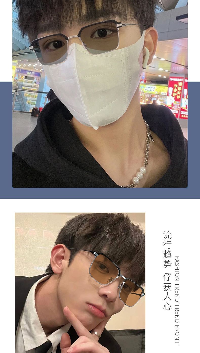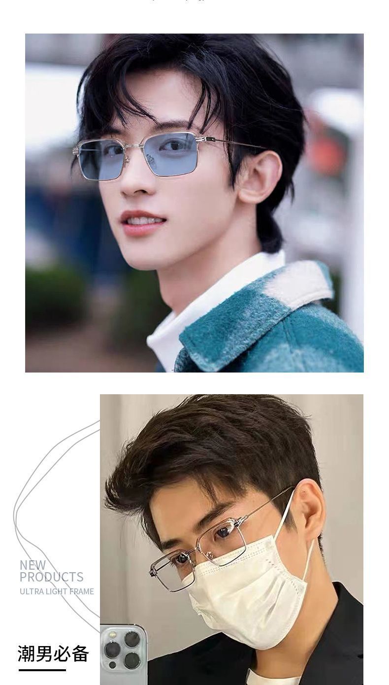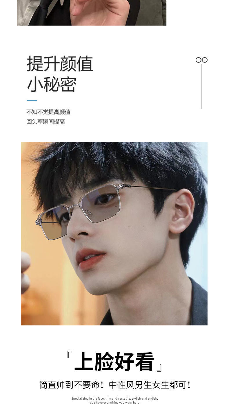 半框变色近视眼镜男痞帅潮方形显脸小专业配镜防蓝光防紫外线护目