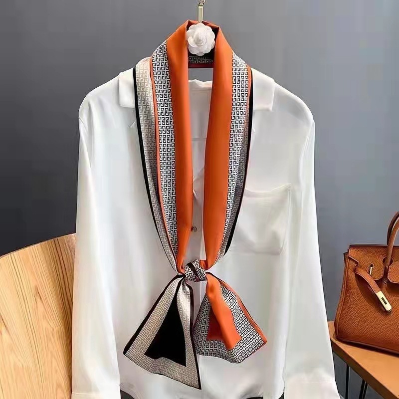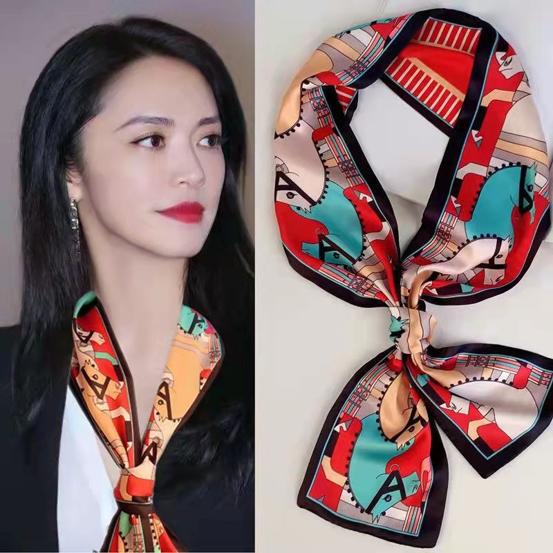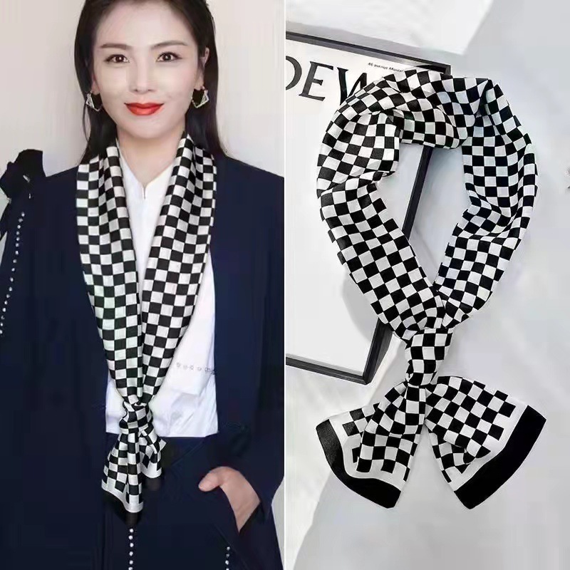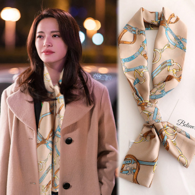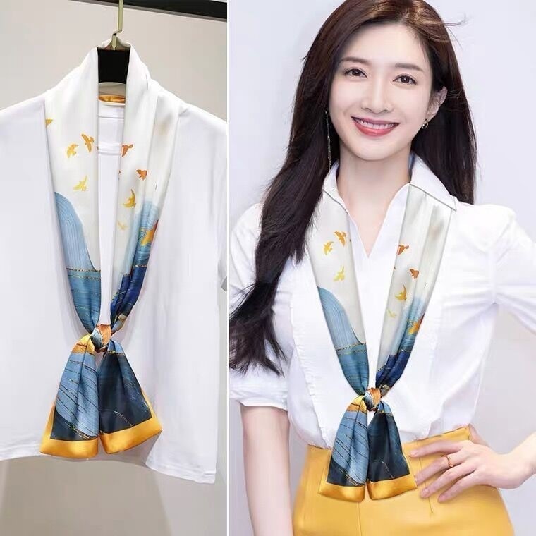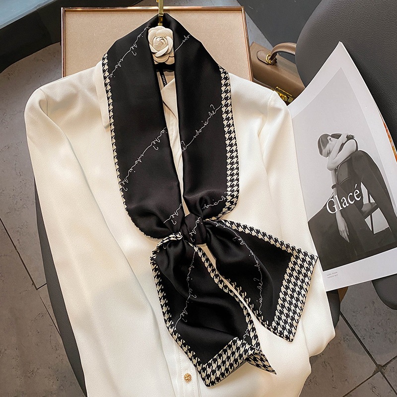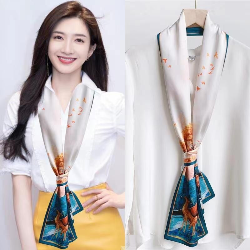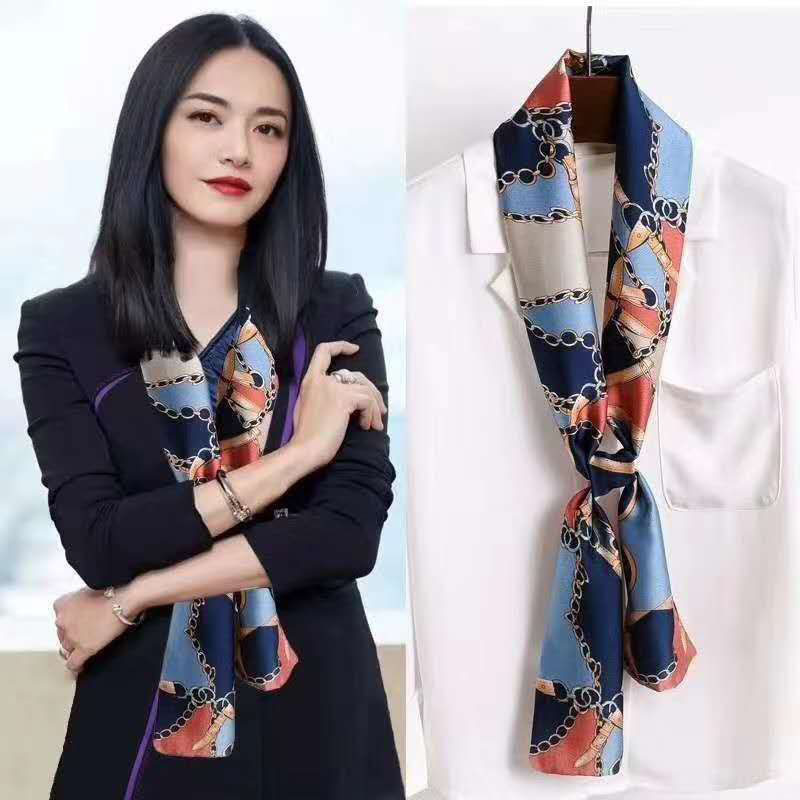 新款飘带小丝巾仿真丝时尚百搭高级感长条丝巾搭配职业领巾薄围巾