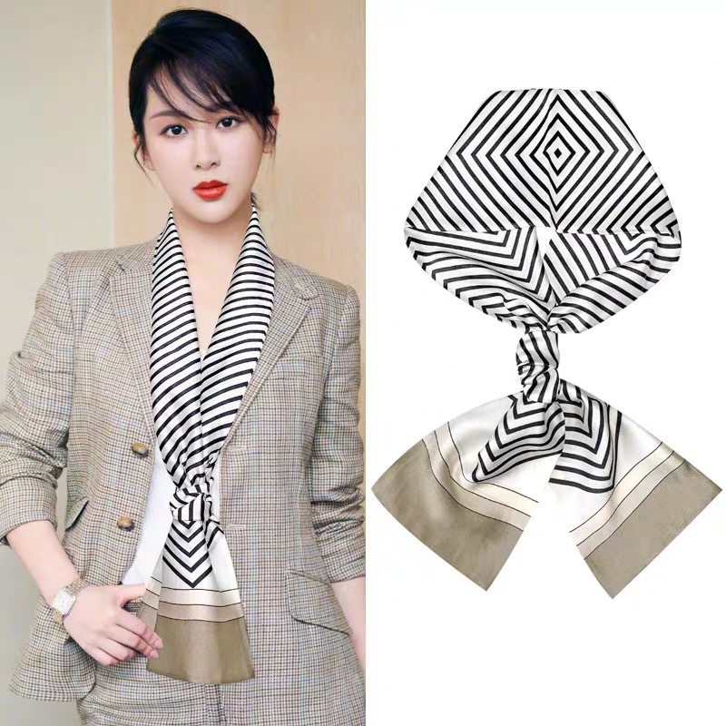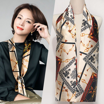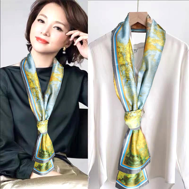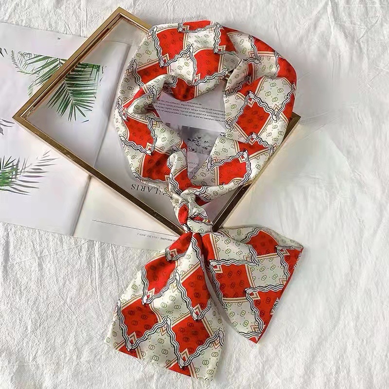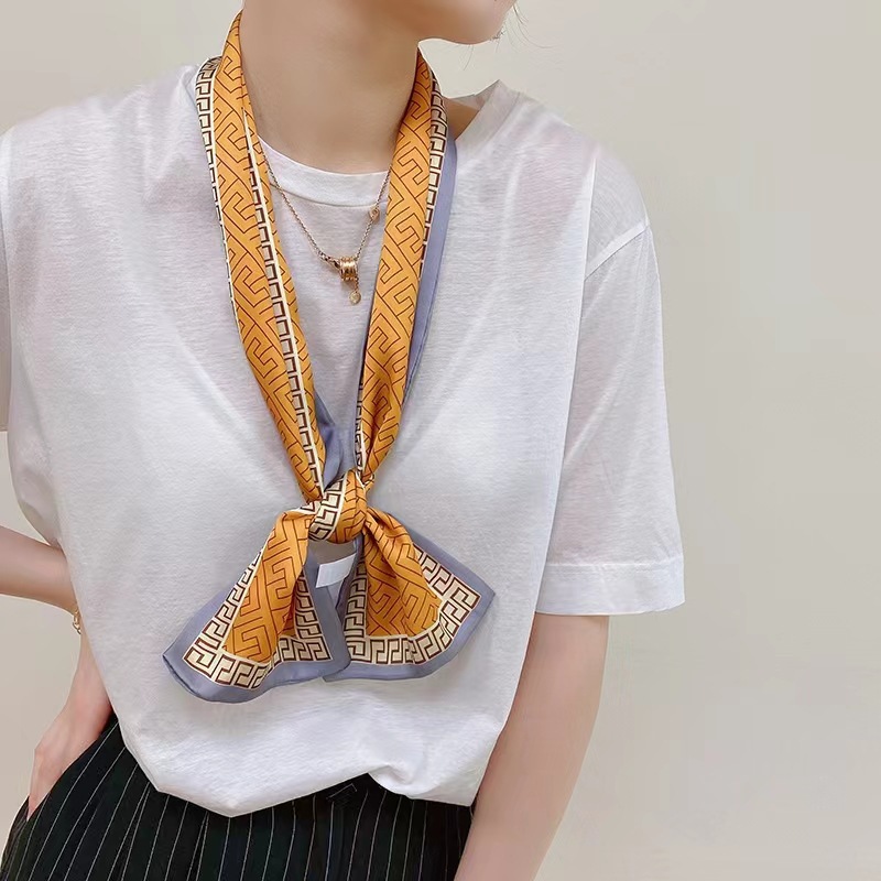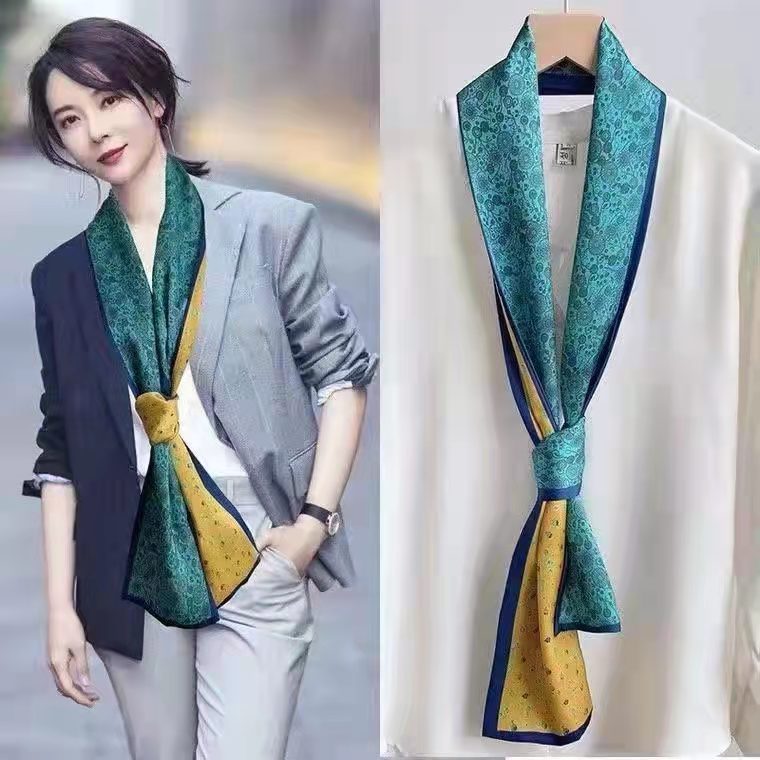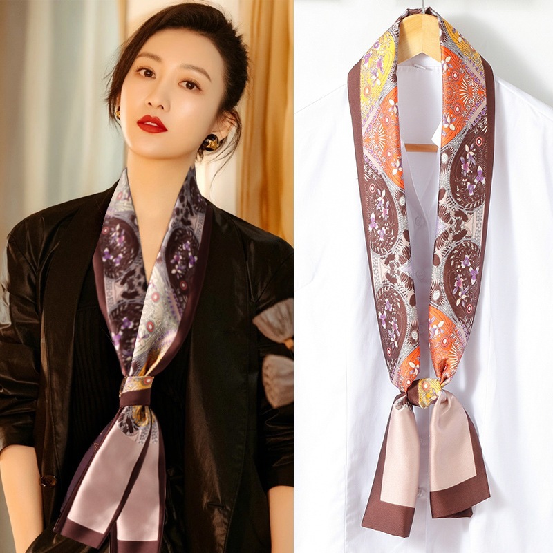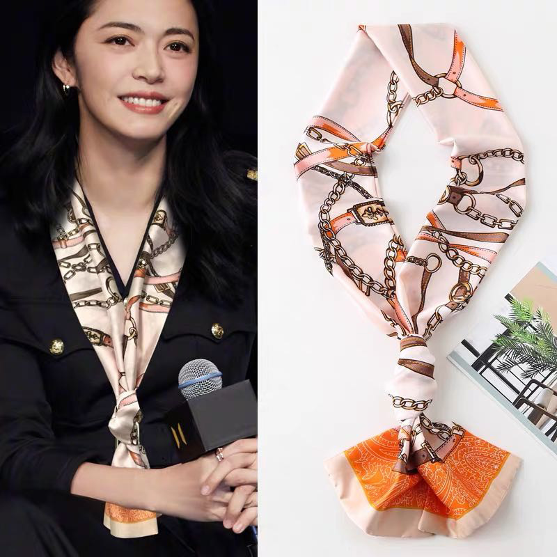 新款飘带小丝巾仿真丝时尚百搭高级感长条丝巾搭配职业领巾薄围巾
