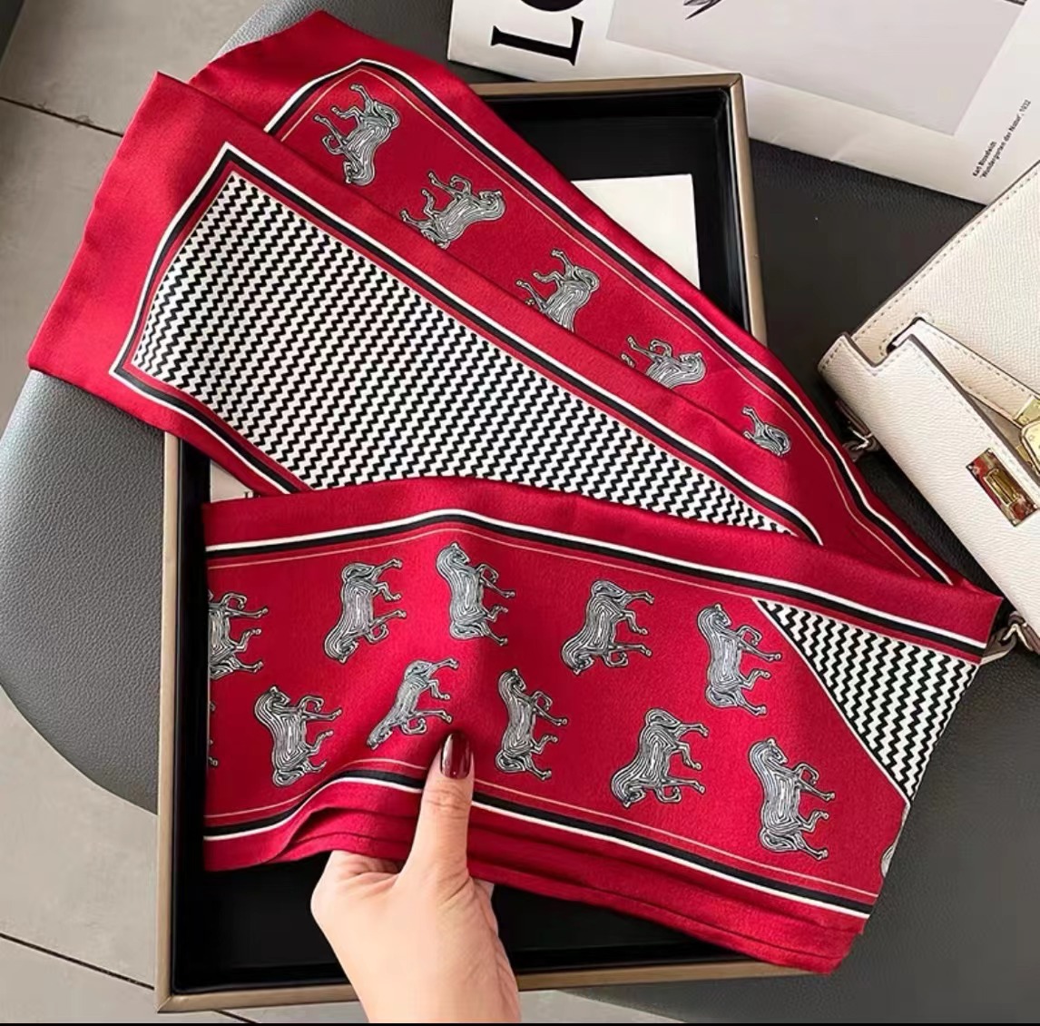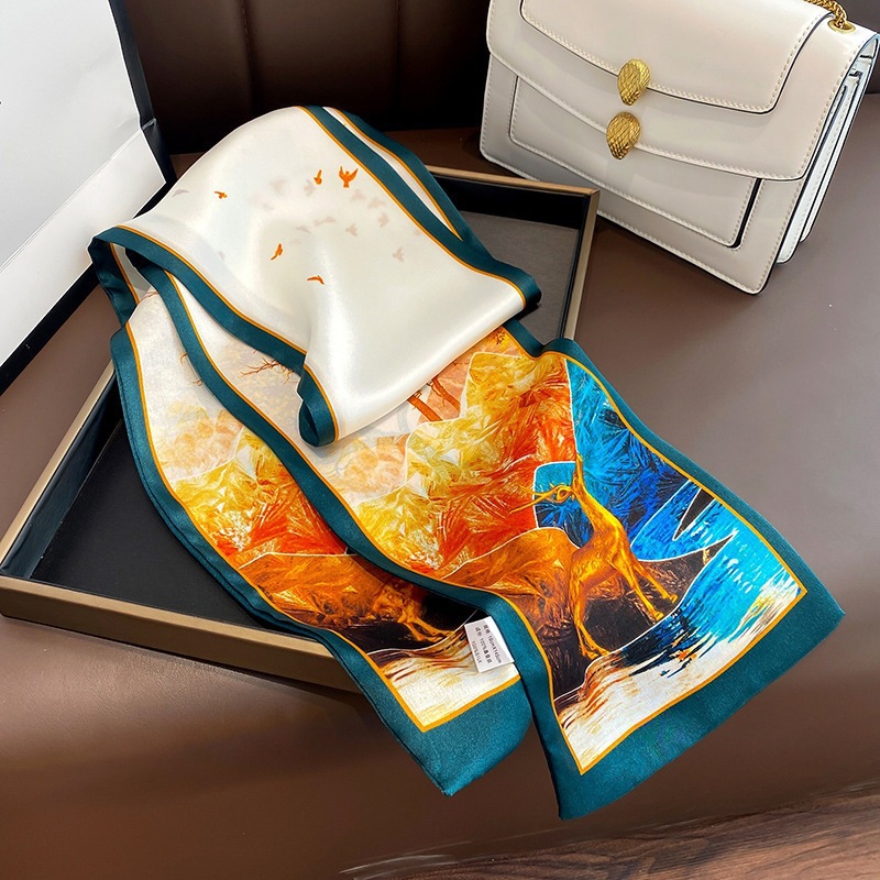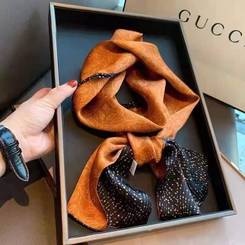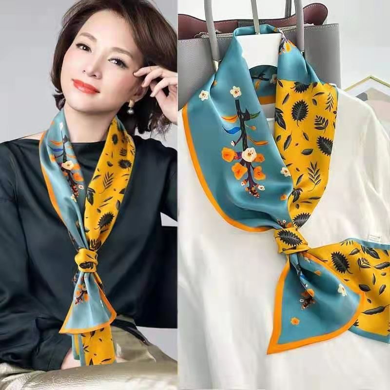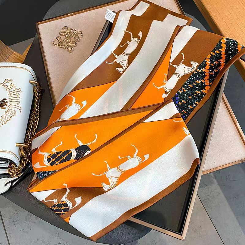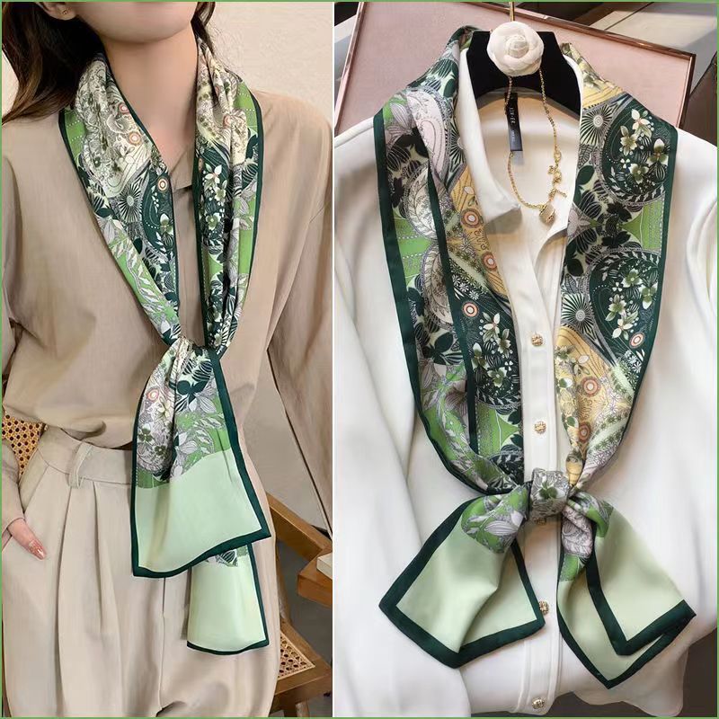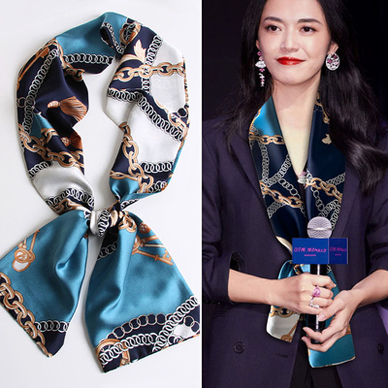 新款飘带小丝巾仿真丝时尚百搭高级感长条丝巾搭配职业领巾薄围巾